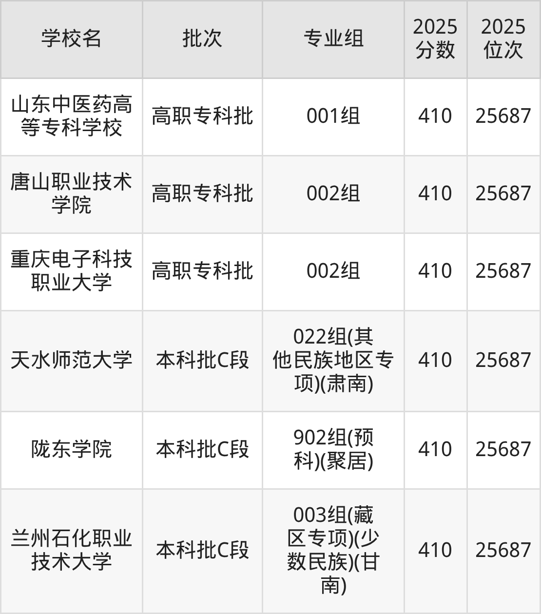 这些都是2026年高考历史类25048名~25282名考生可以报考的大学,更多学校名单如下表所示: