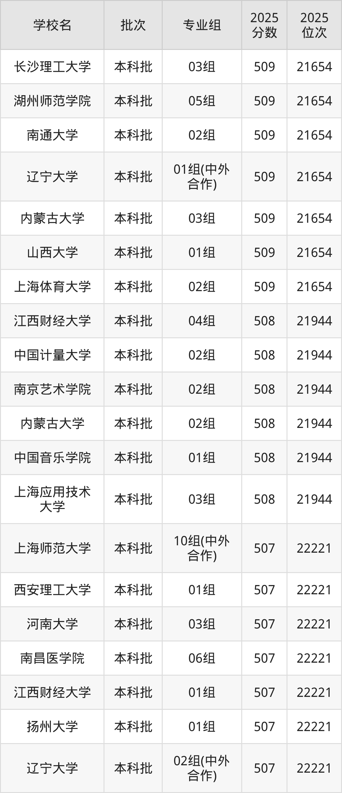 2025年上海高考507分(21945名~22221名)能上的大学有上海音乐学院02组、辽宁大学02组(中外合作)、扬州大学01组、江西财经大学01组等。