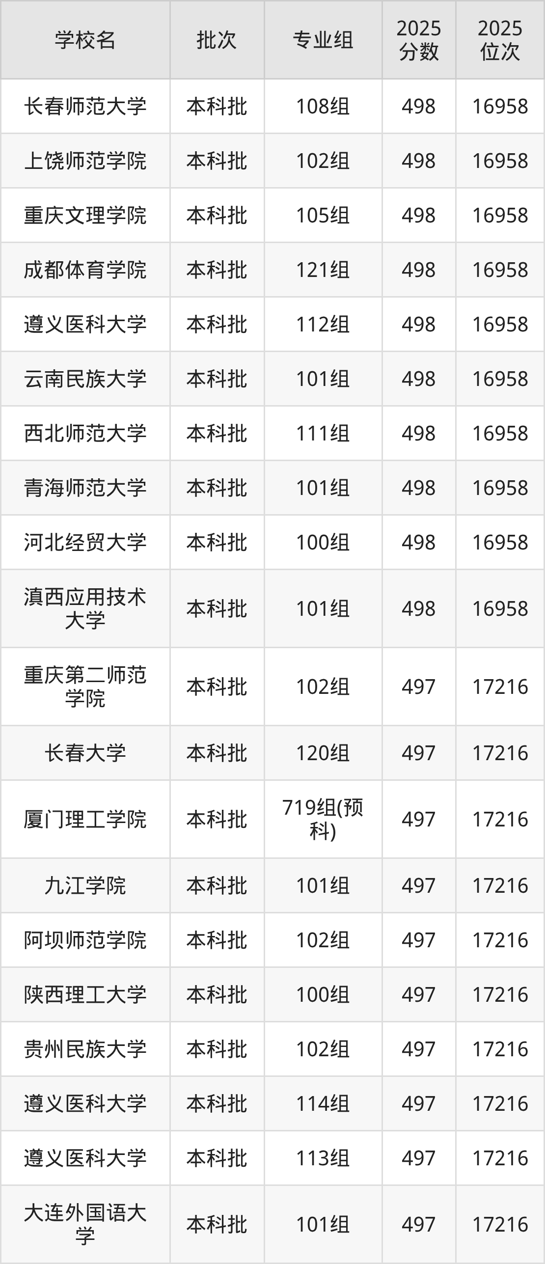 这些都是2026年高考历史类17217名~17503名考生可以报考的大学,更多学校名单如下表所示:
