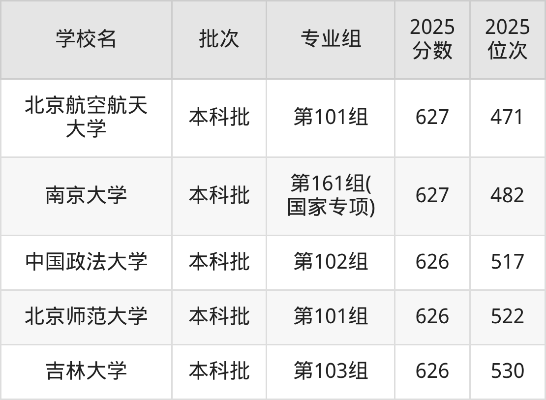 这些都是2026年高考历史类30名~34名考生可以报考的大学,更多学校名单如下表所示: