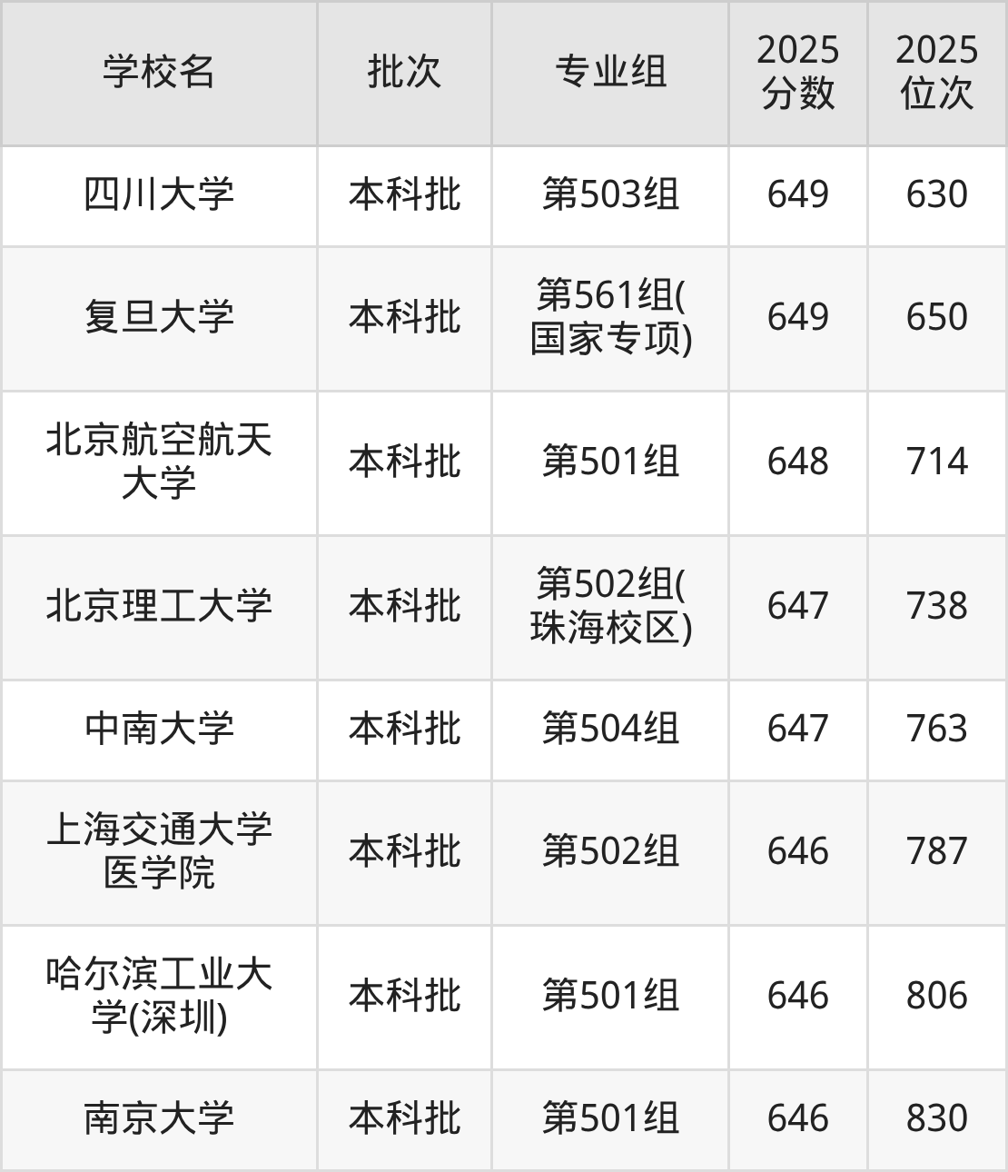 另外录取位次低于该区间(较稳妥)的有上海交通大学第502组(341名)、中国科学院大学第501组(361名)等;录取位次高于该区间(可冲)的有浙江大学第501组(296名)、复旦大学第501组(283名)等。