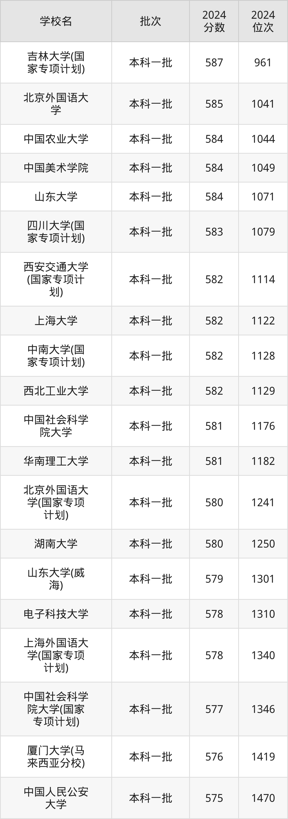这些都是2025年高考文科1440名~1488名考生可以报考的大学,更多学校名单如下表所示:
