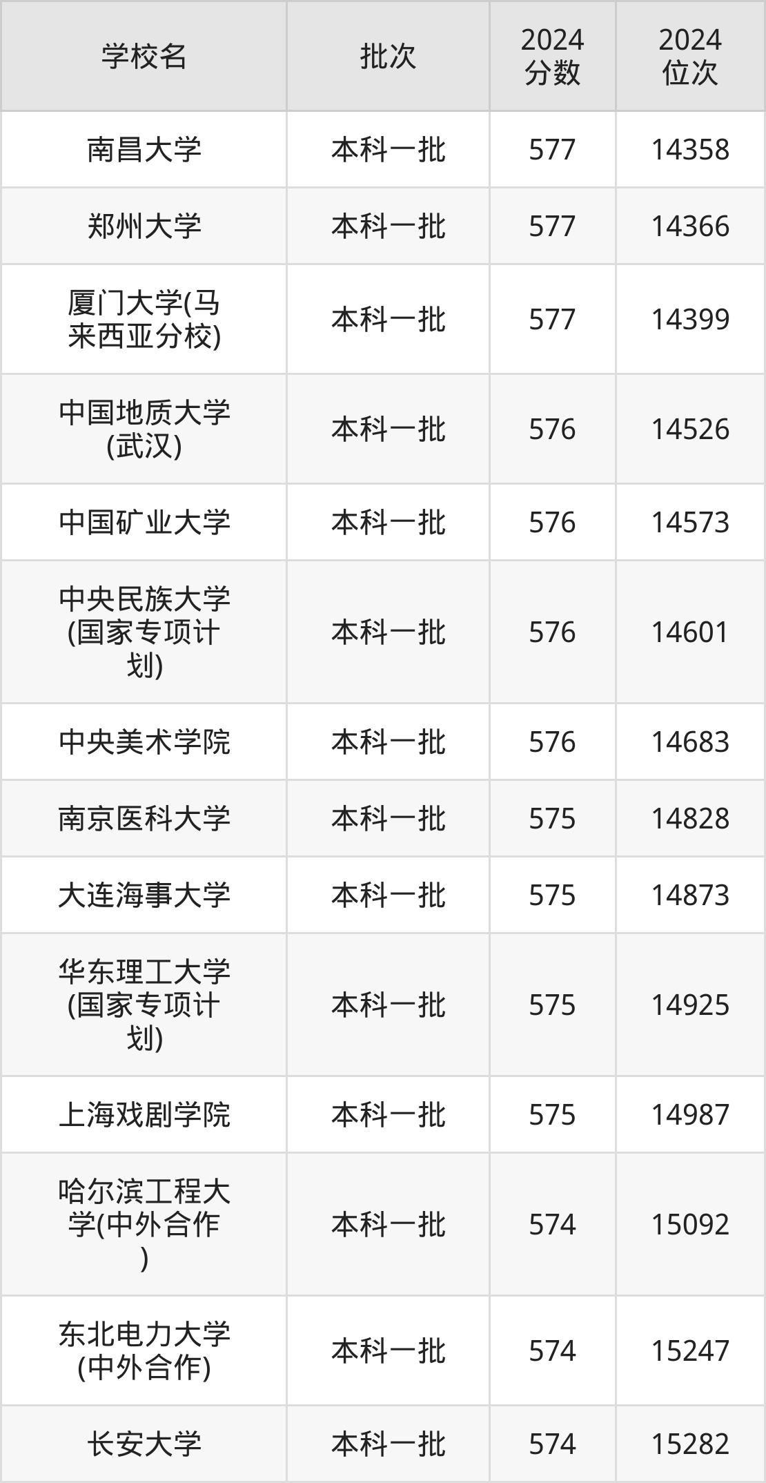 2024年陕西高考理科575分(14714名~15023名)能上的大学有大连海事大学、南京医科大学、上海戏剧学院、华东理工大学(国家专项计划)。