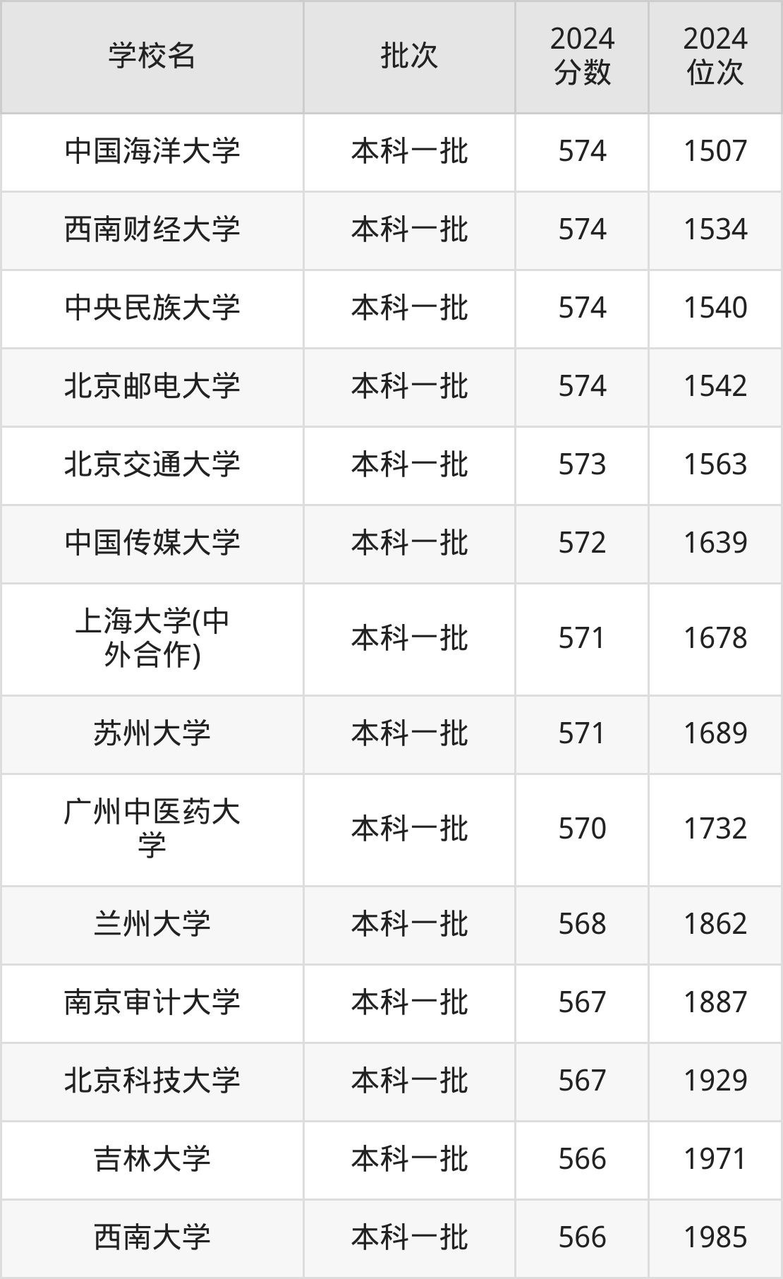 由于高考录取分数线历年波动较大,因此本文以该分数对应的位次排名为大家整理能上的大学名单。