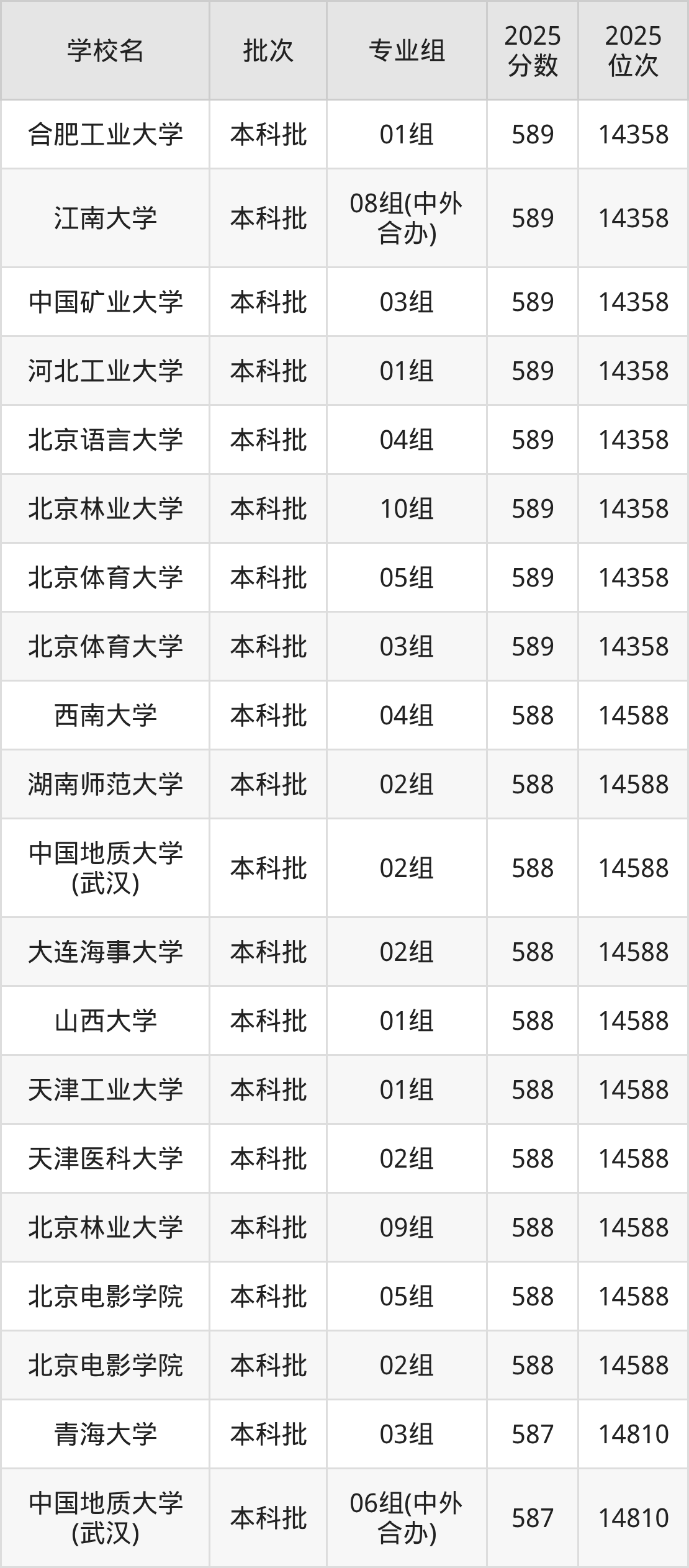 这些都是2026年高考14811名~15084名考生可以报考的大学,更多学校名单如下表所示: