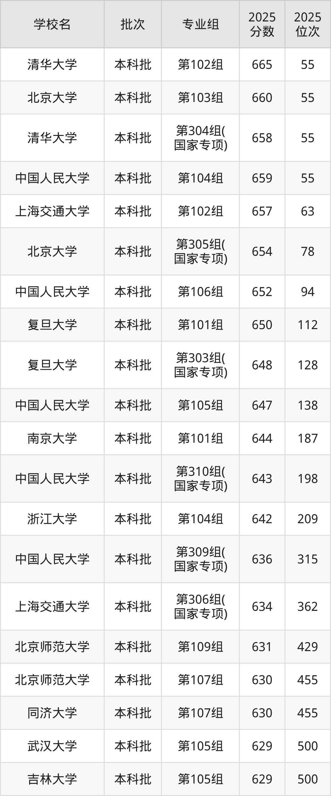 2025年湖南高考历史类639分(247名~261名)录取位次低于该区间(较稳妥)的有中国人民大学第309组(国家专项)(315名)、上海交通大学第306组(国家专项)(362名)等;录取位次高于该区间(可冲)的有浙江大学第104组(209名)、中国人民大学第310组(国家专项)(198名)等。