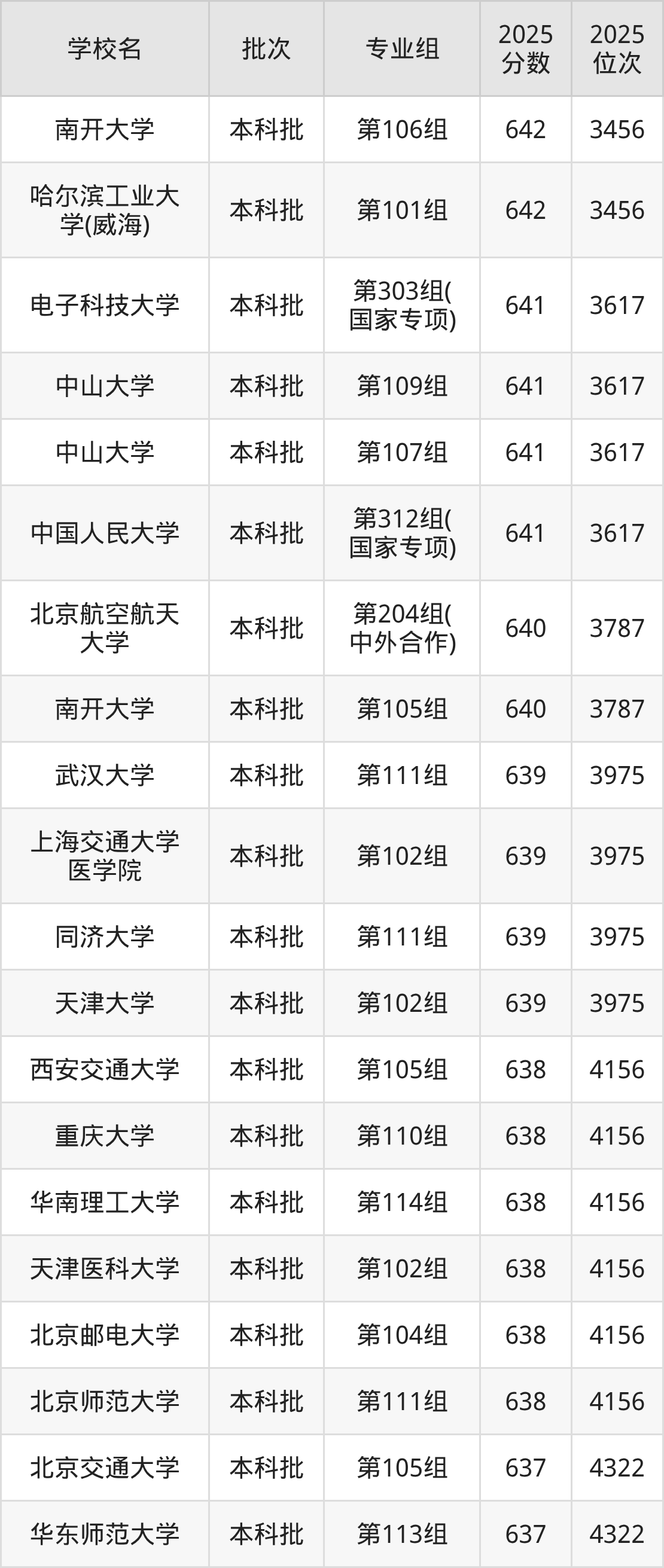 2025年湖南高考物理类639分(3788名~3975名)能上的大学有天津大学第102组、同济大学第111组、上海交通大学医学院第102组、武汉大学第111组。