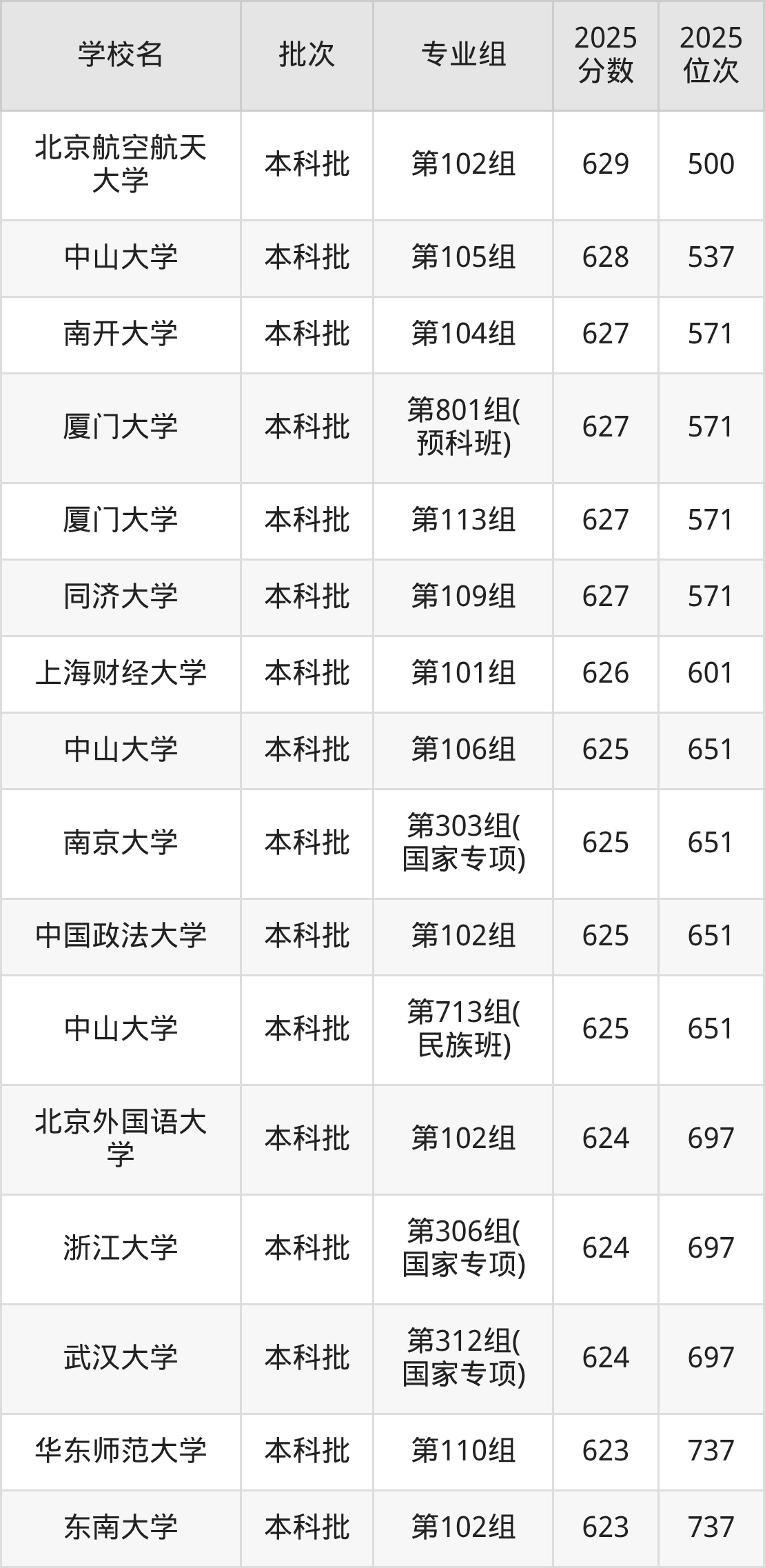 另外录取位次低于该区间(较稳妥)的有重庆大学第110组(4156名)、华南理工大学第114组(4156名)等;录取位次高于该区间(可冲)的有南开大学第105组(3787名)、北京航空航天大学第204组(中外合作)(3787名)等。