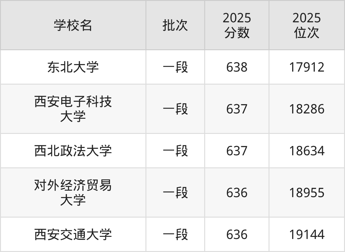 2025年浙江高考637分(18135名~18815名)能上的大学有西北政法大学、西安电子科技大学。