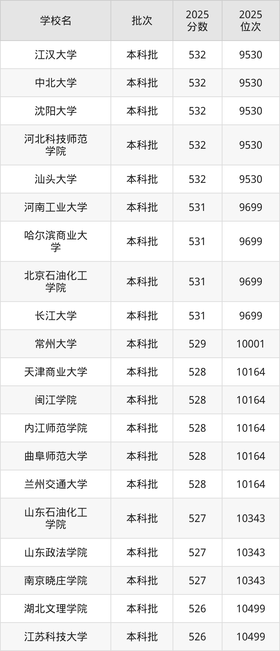 2025年辽宁高考历史类528分(10002名~10164名)能上的大学有兰州交通大学、曲阜师范大学、天津商业大学、闽江学院等。