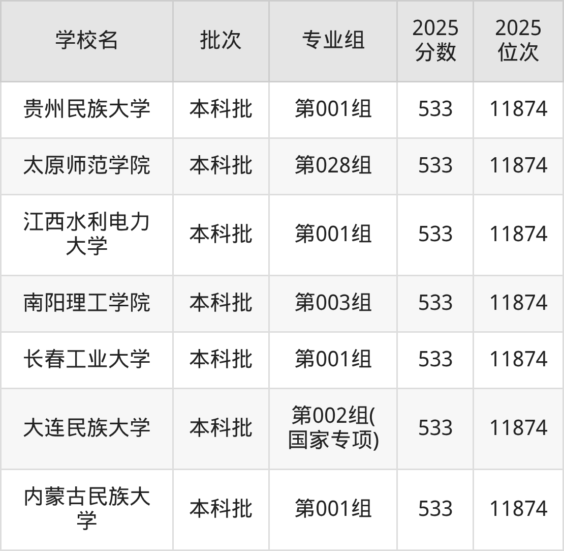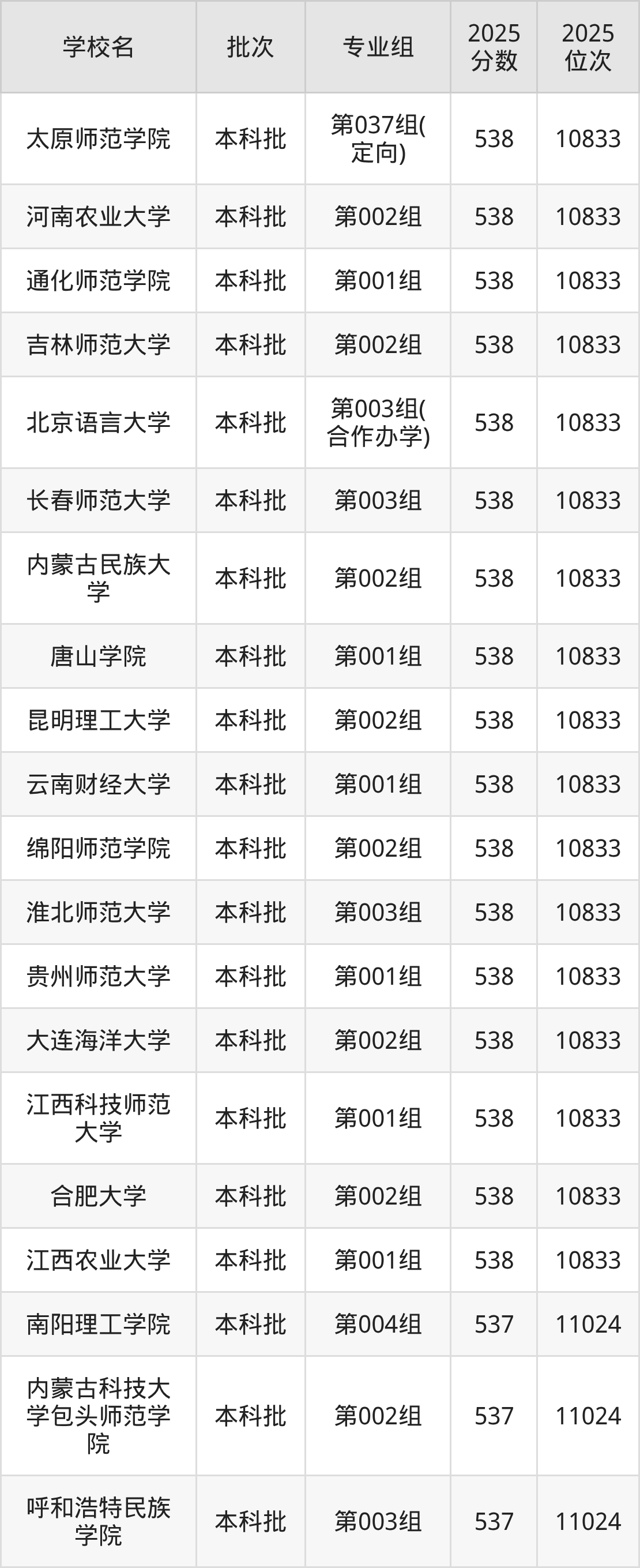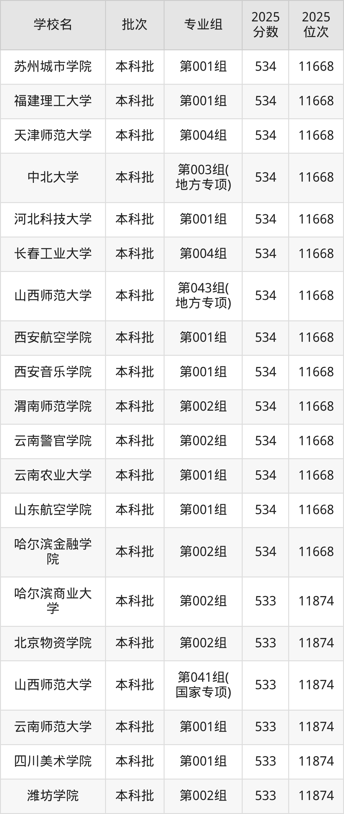 这些都是2026年高考历史类11239名~11462名考生可以报考的大学,更多学校名单如下表所示: