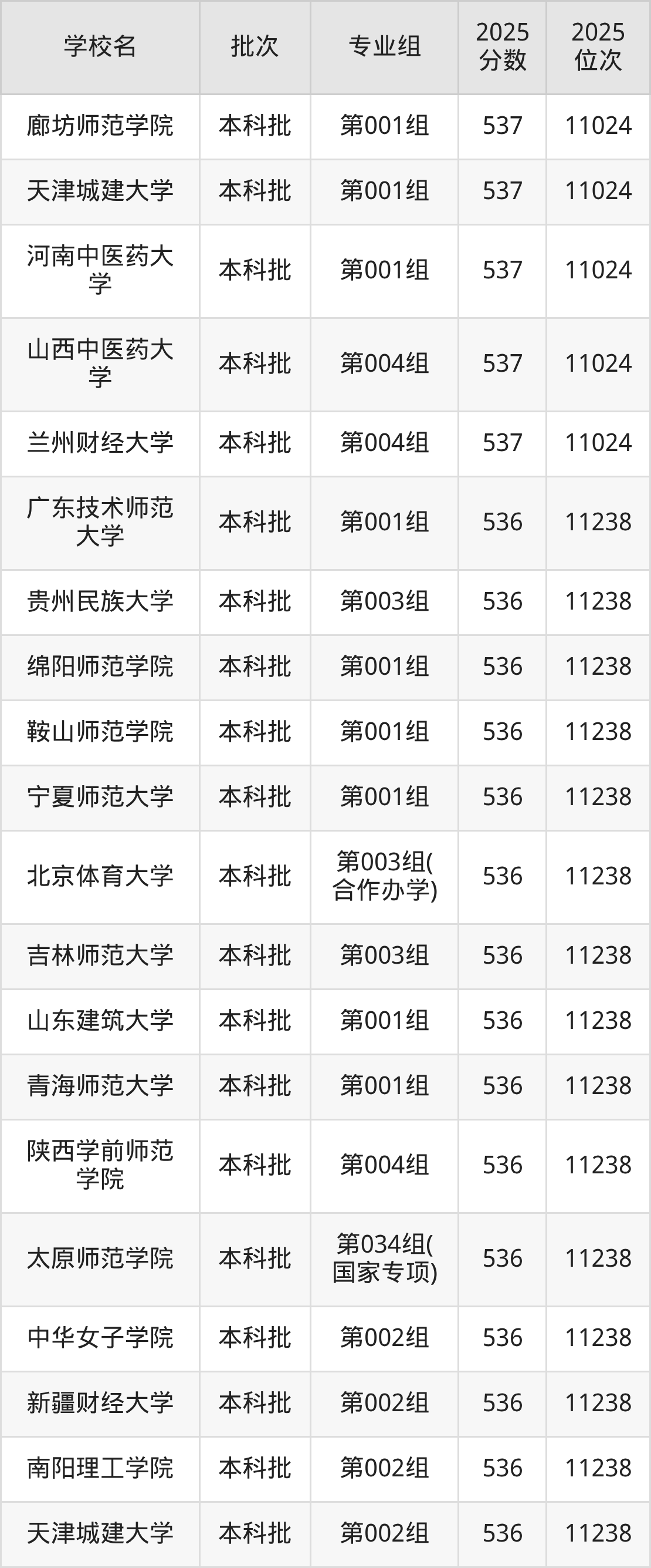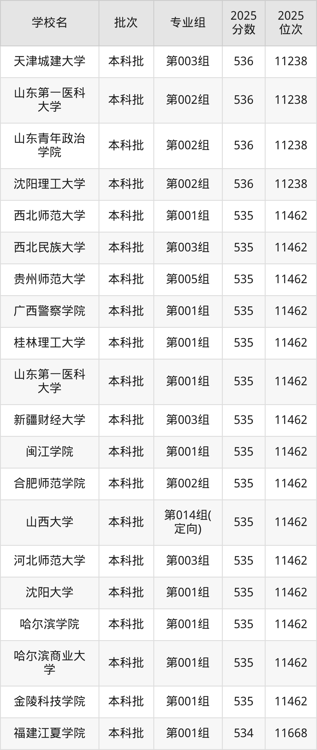 2025年山西高考历史类535分(11239名~11462名)能上的大学有河北师范大学第003组、沈阳大学第001组、哈尔滨学院第001组、哈尔滨商业大学第001组等。