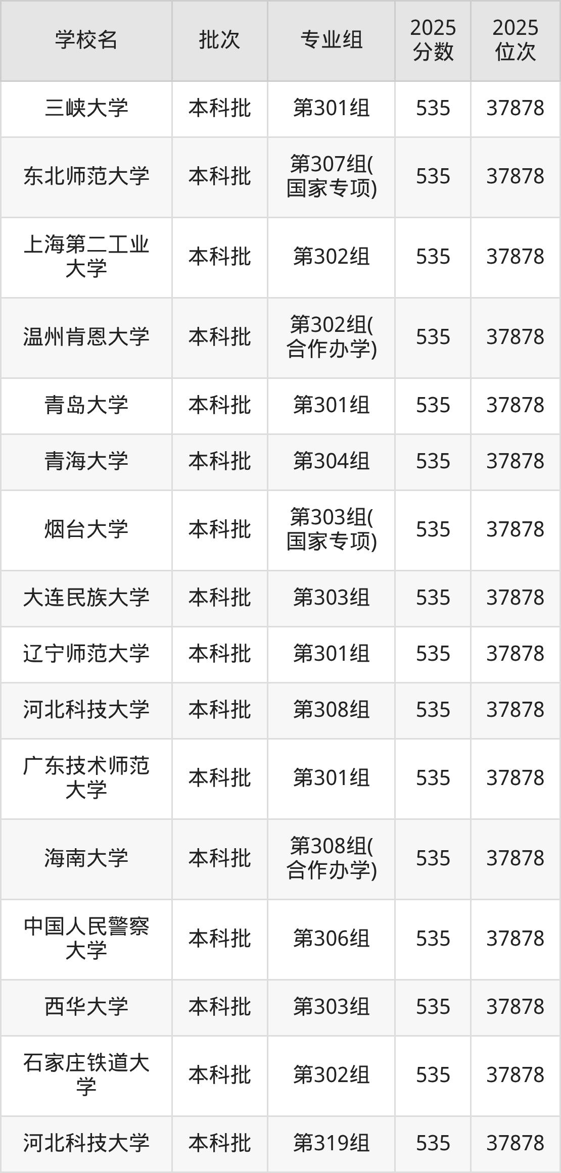 2025年山西高考物理类535分(37307名~37878名)能上的大学有河北科技大学第308组、河北科技大学第319组、石家庄铁道大学第302组、中国人民警察大学第306组等。