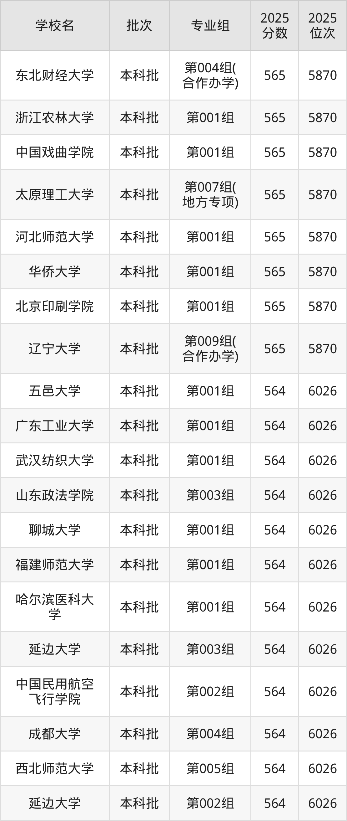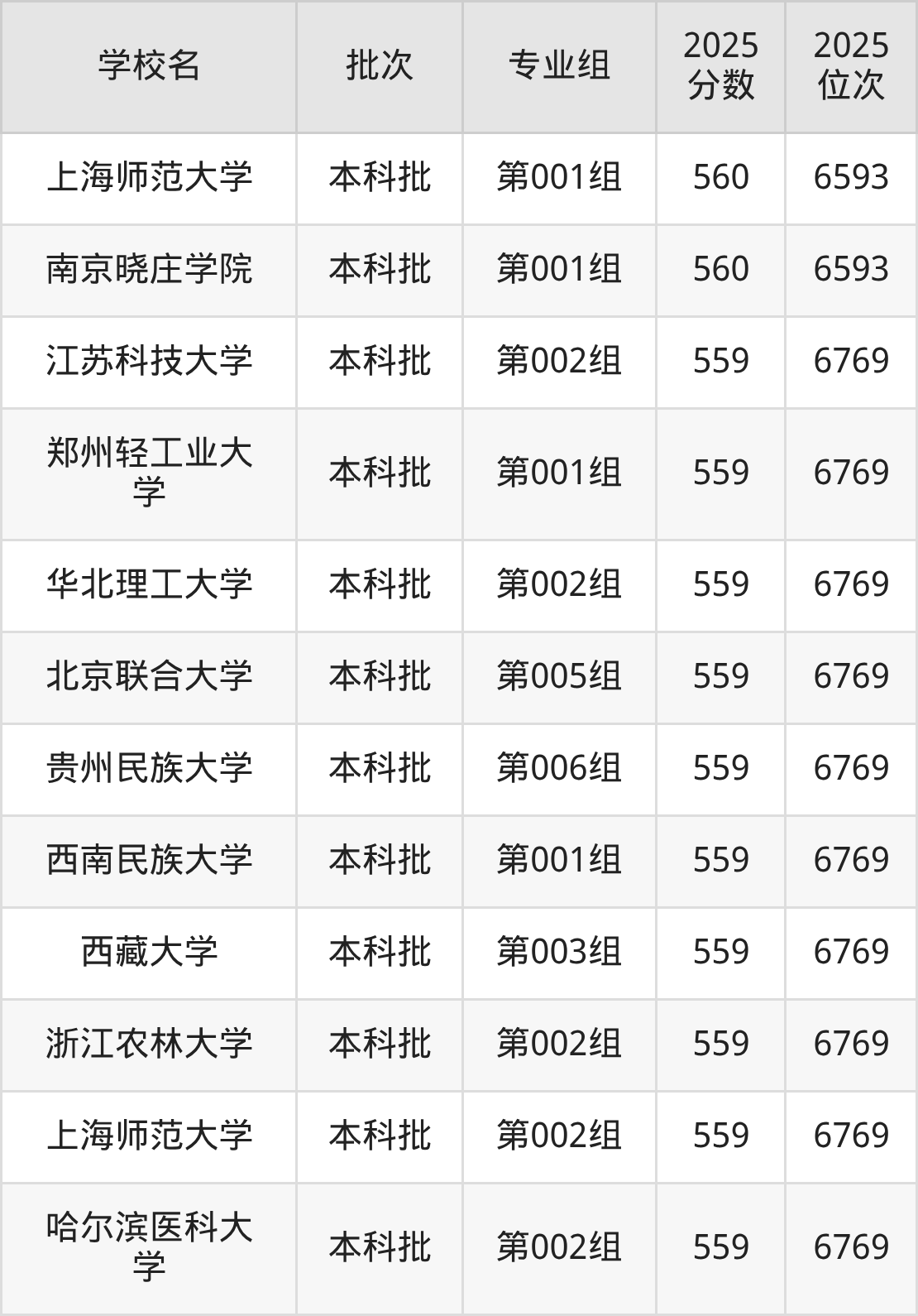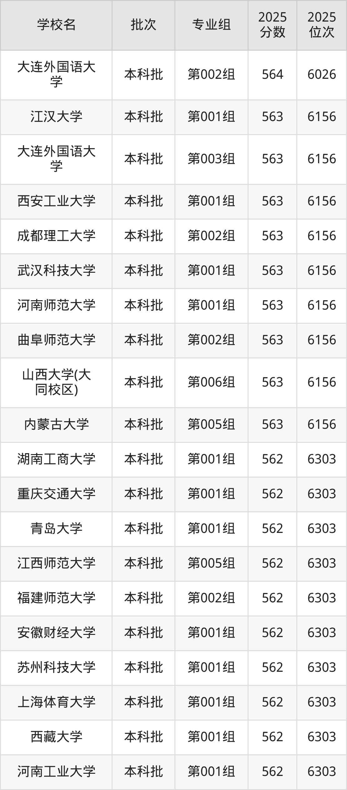 这些都是2026年高考历史类6304名~6430名考生可以报考的大学,更多学校名单如下表所示: