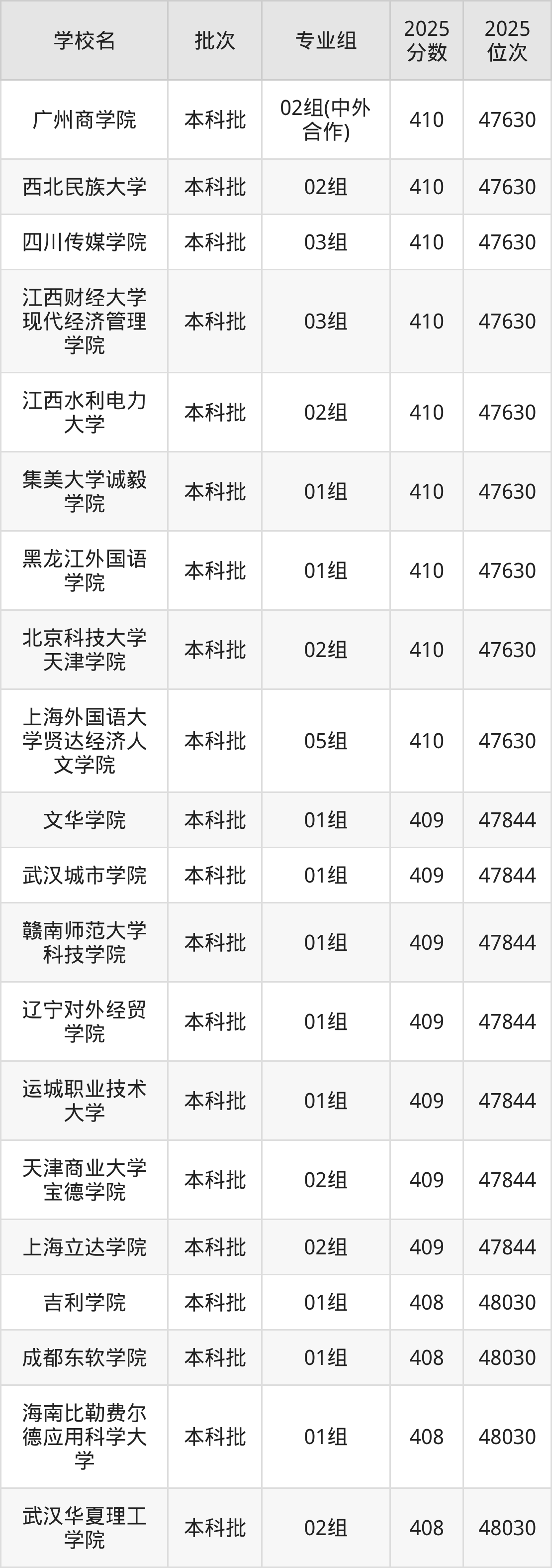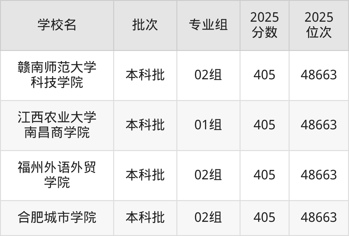 这些都是2026年高考48031名~48244名考生可以报考的大学,更多学校名单如下表所示: