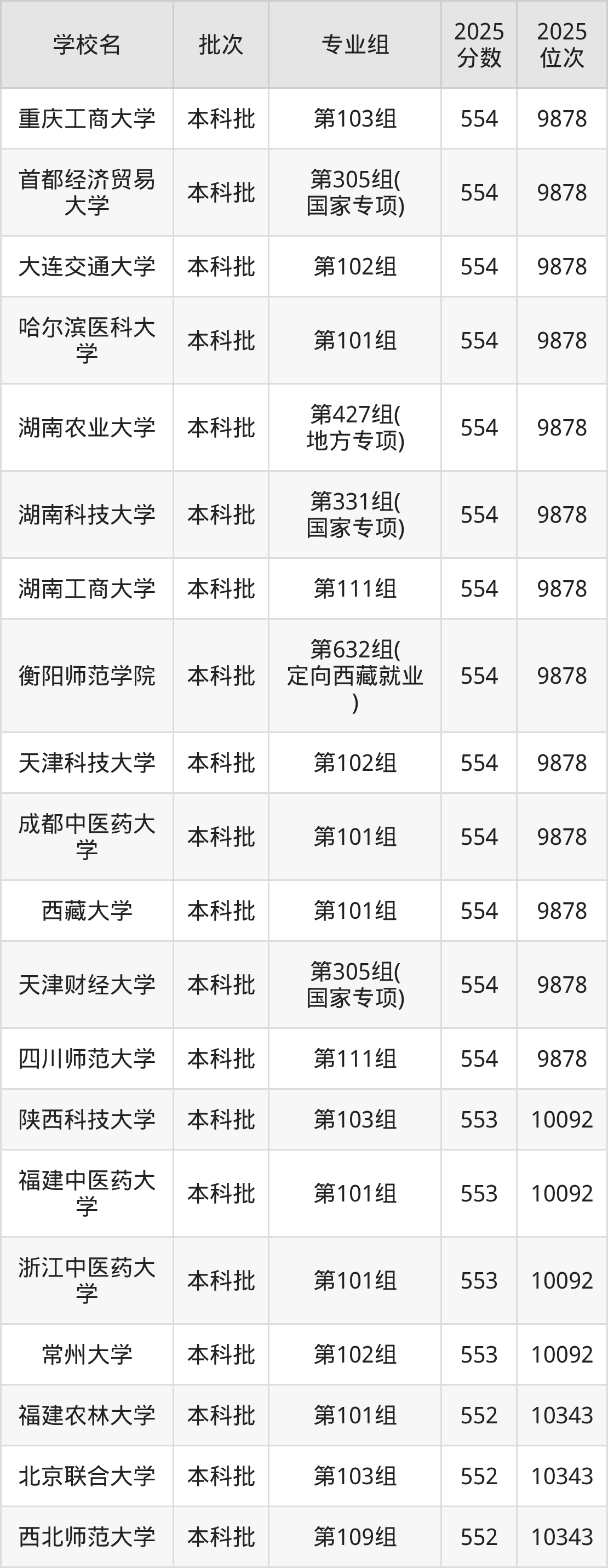这些都是2026年高考历史类10344名~10581名考生可以报考的大学,更多学校名单如下表所示: