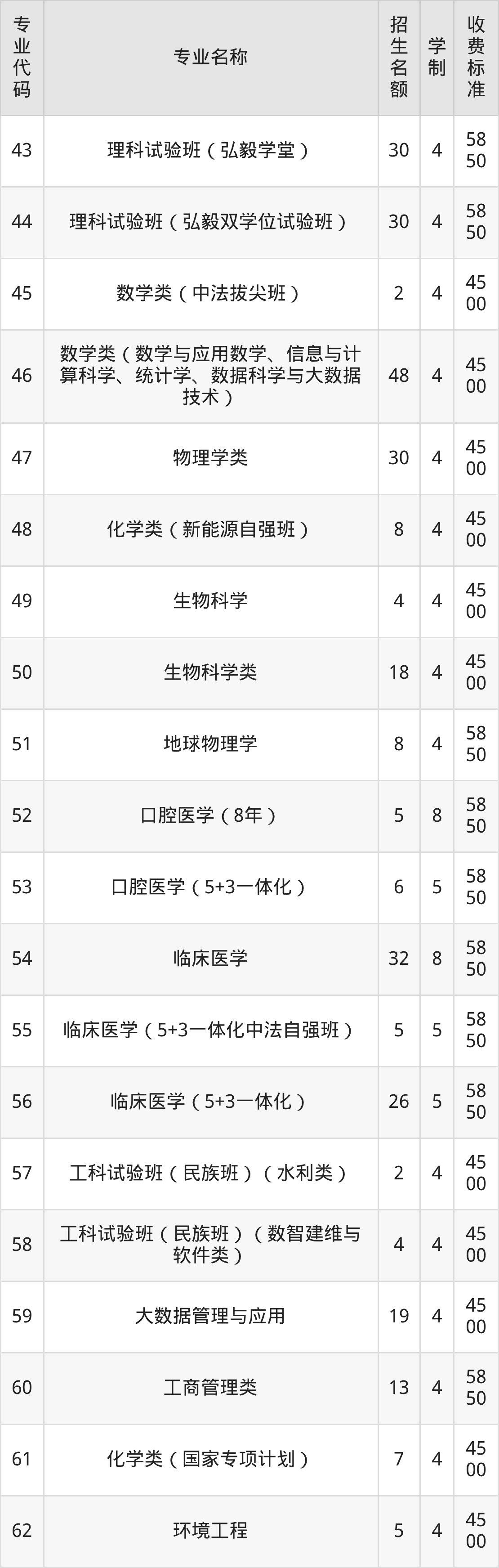 | 09 | 文科试验班类 | 55 | 4 | 5850 |