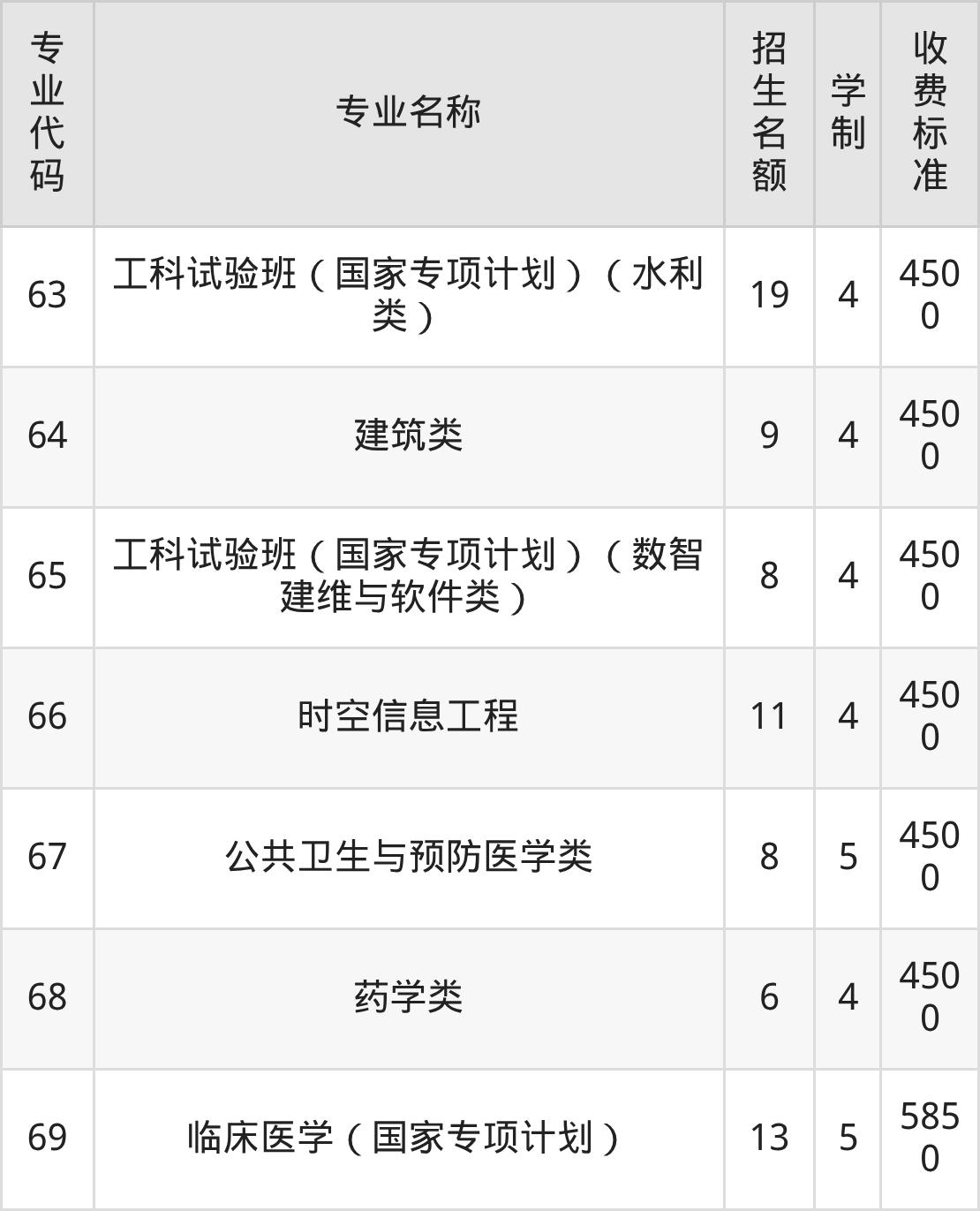| 专业 代码 | 专业名称 | 招生 名额 | 学 制 | 收费 标准 |
