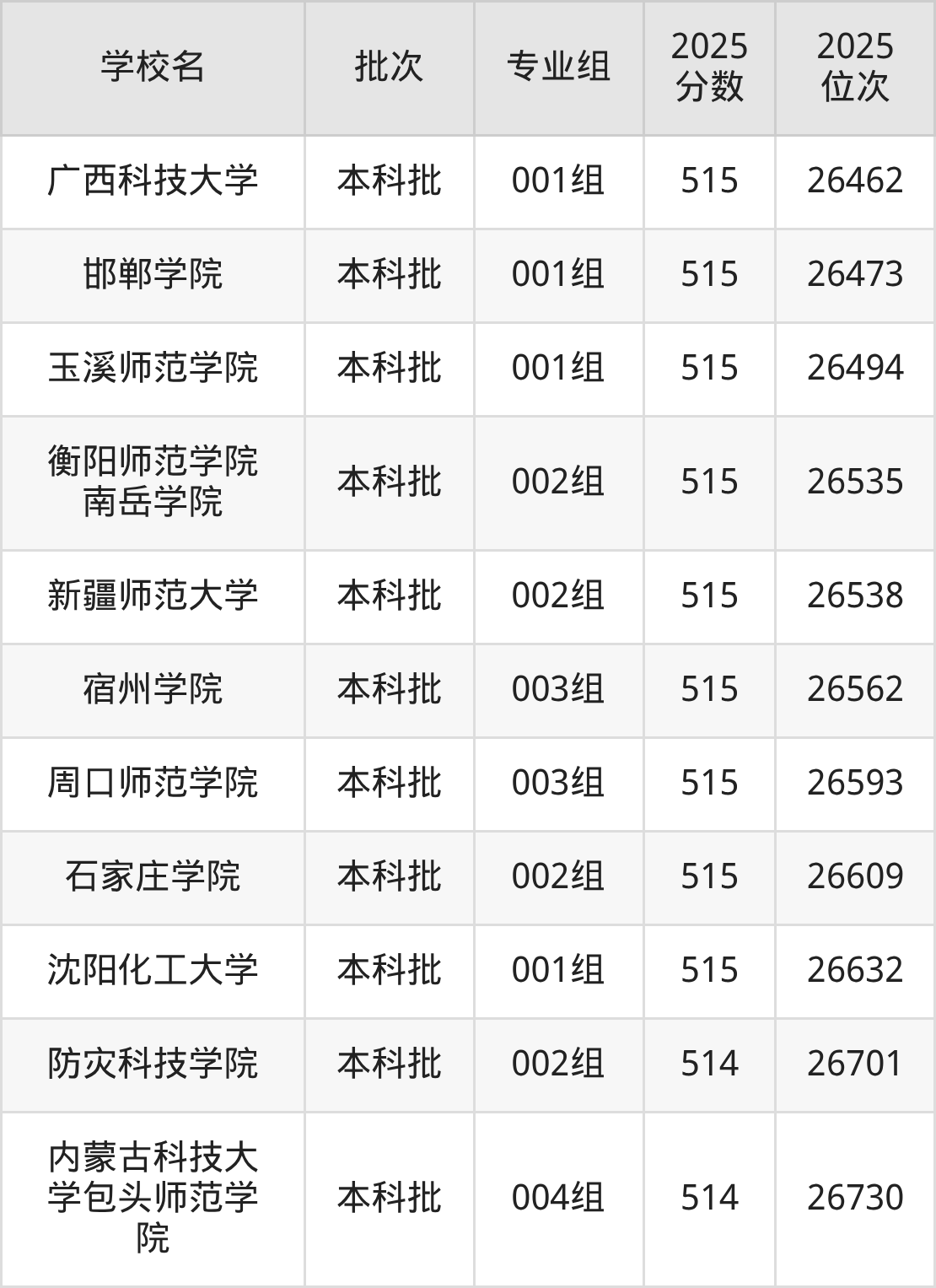 这些都是2026年高考历史类25853名~26278名考生可以报考的大学,更多学校名单如下表所示: