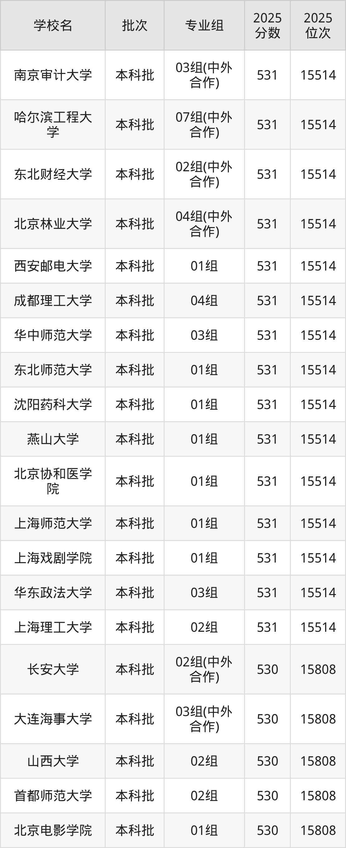 这些都是2026年高考15809名~16109名考生可以报考的大学,更多学校名单如下表所示: