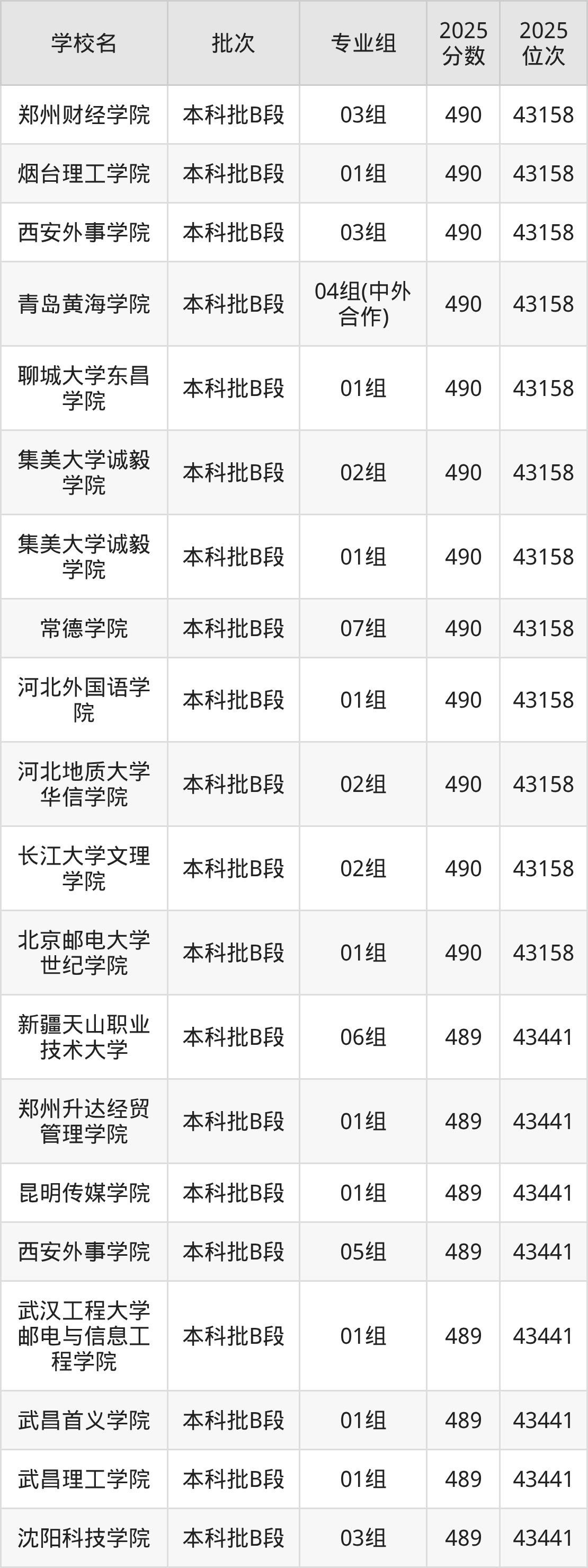 这些都是2026年高考43442名~43748名考生可以报考的大学,更多学校名单如下表所示: