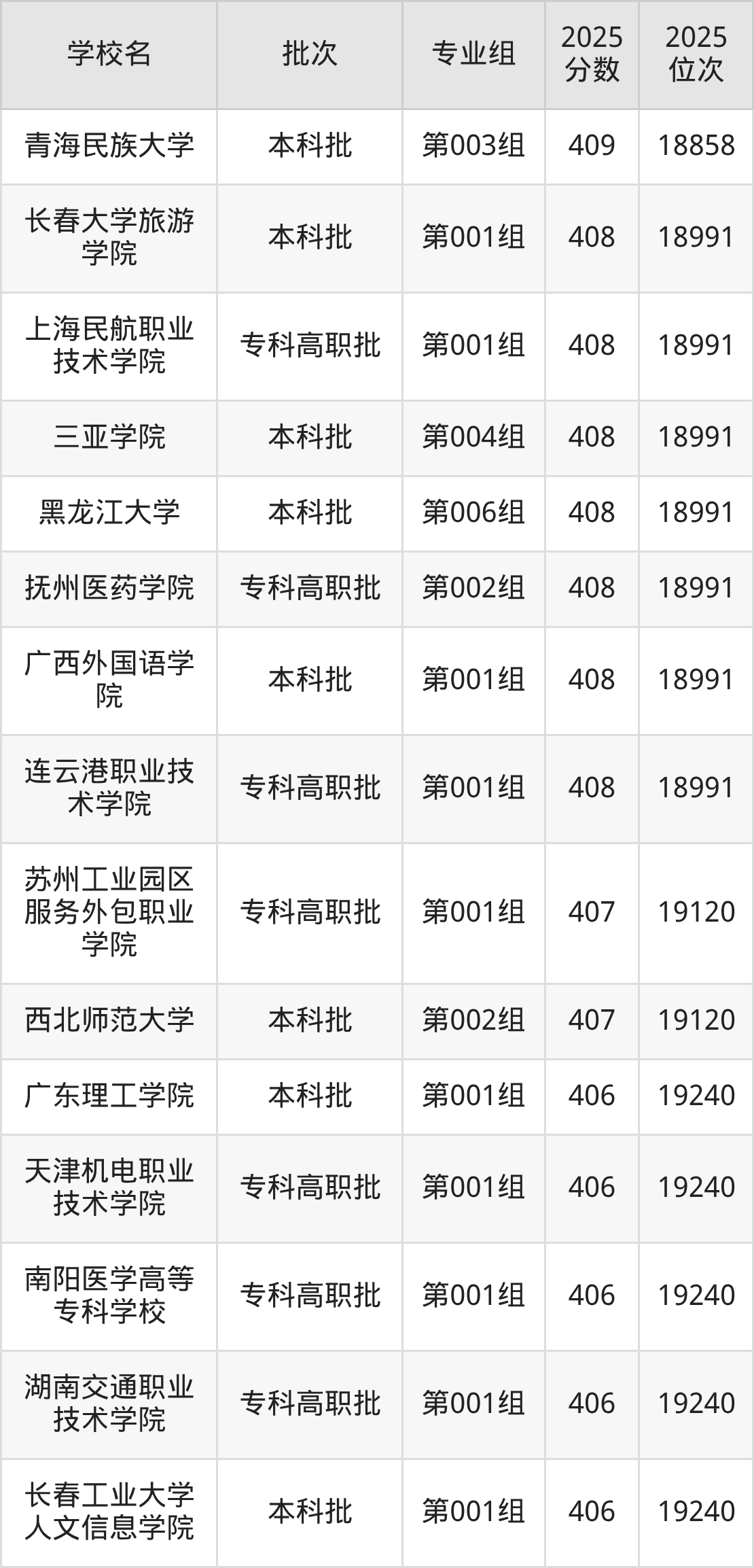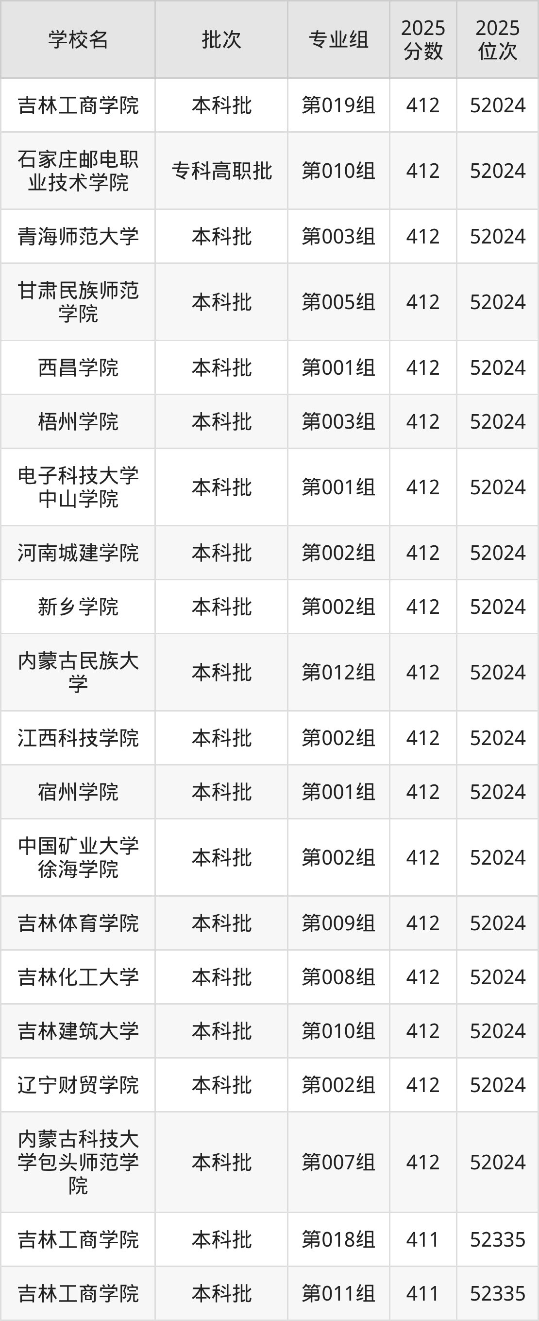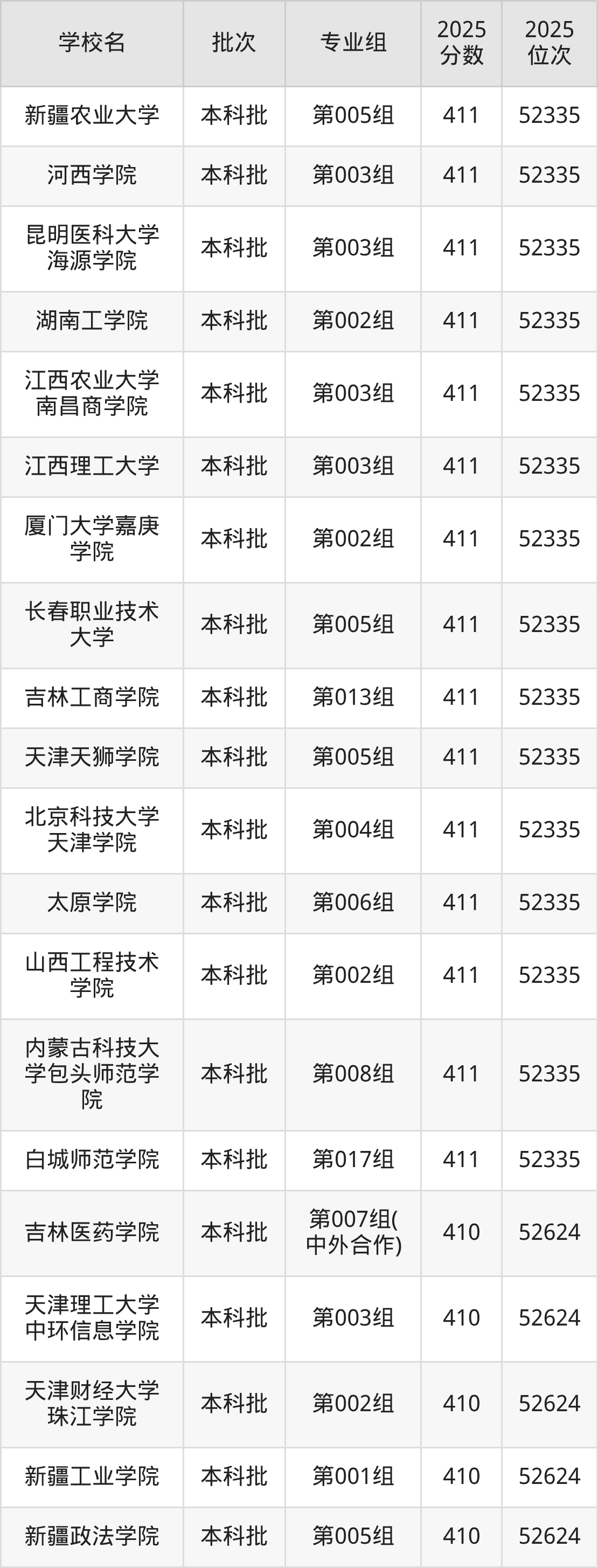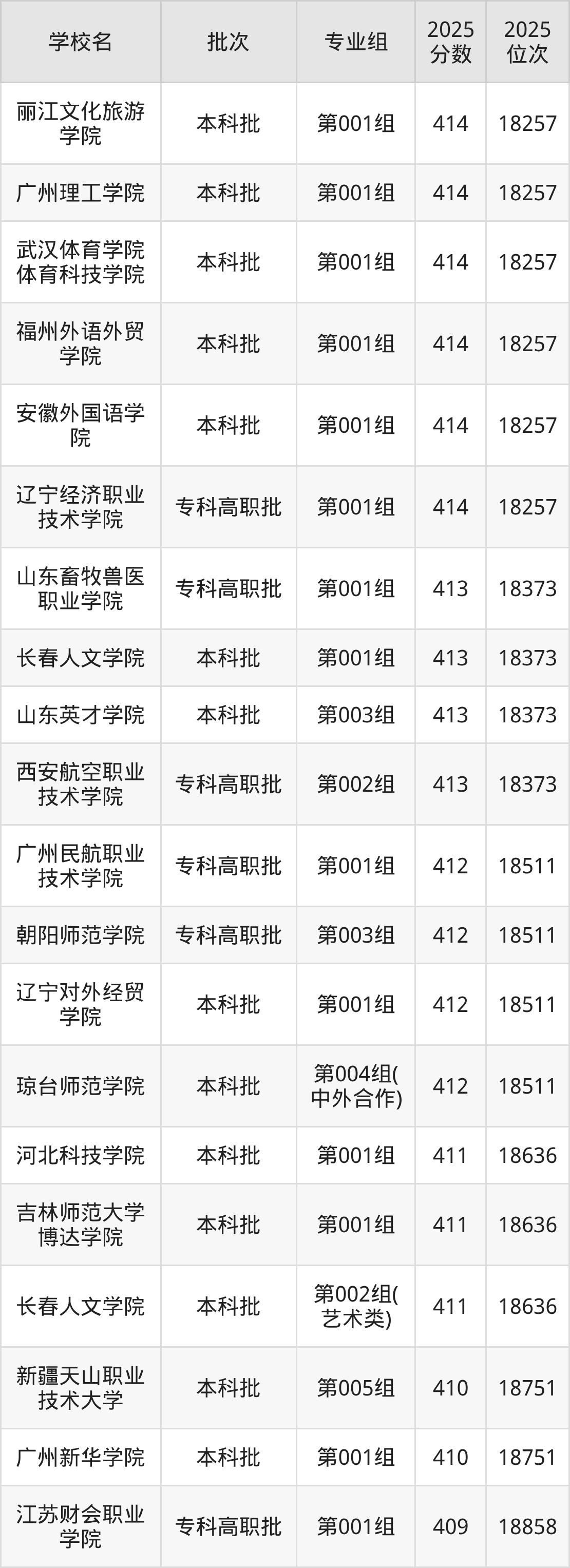 2025年吉林高考历史类410分(18637名~18751名)能上的大学有广州新华学院第001组、新疆天山职业技术大学第005组。