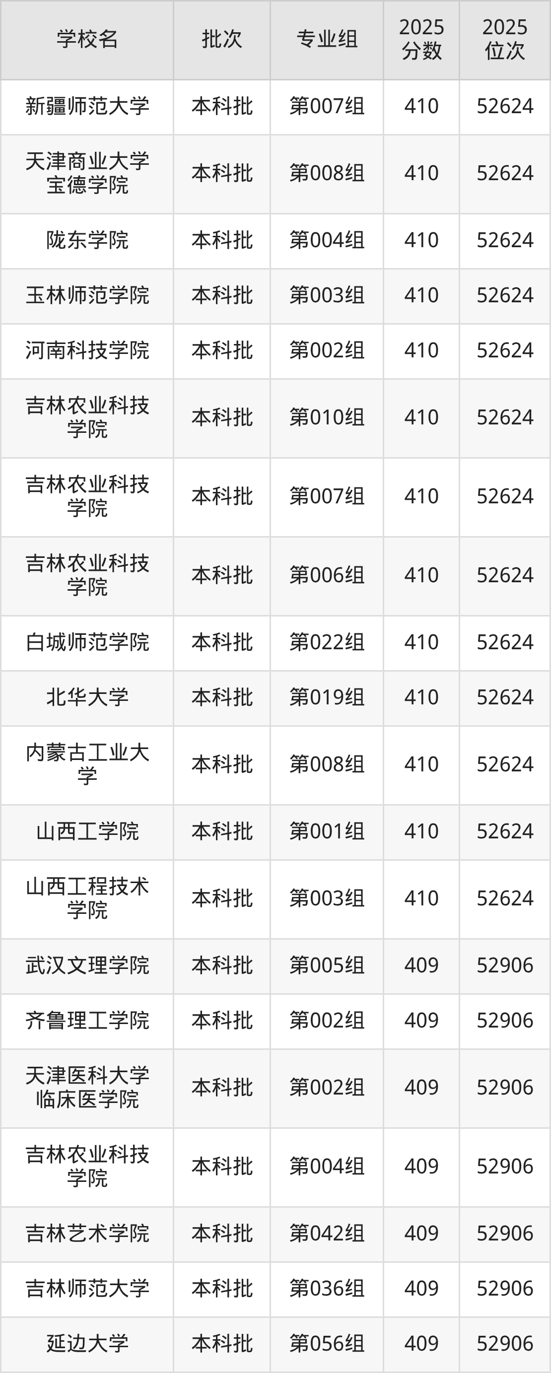二、吉林410分位次排名能上的大学