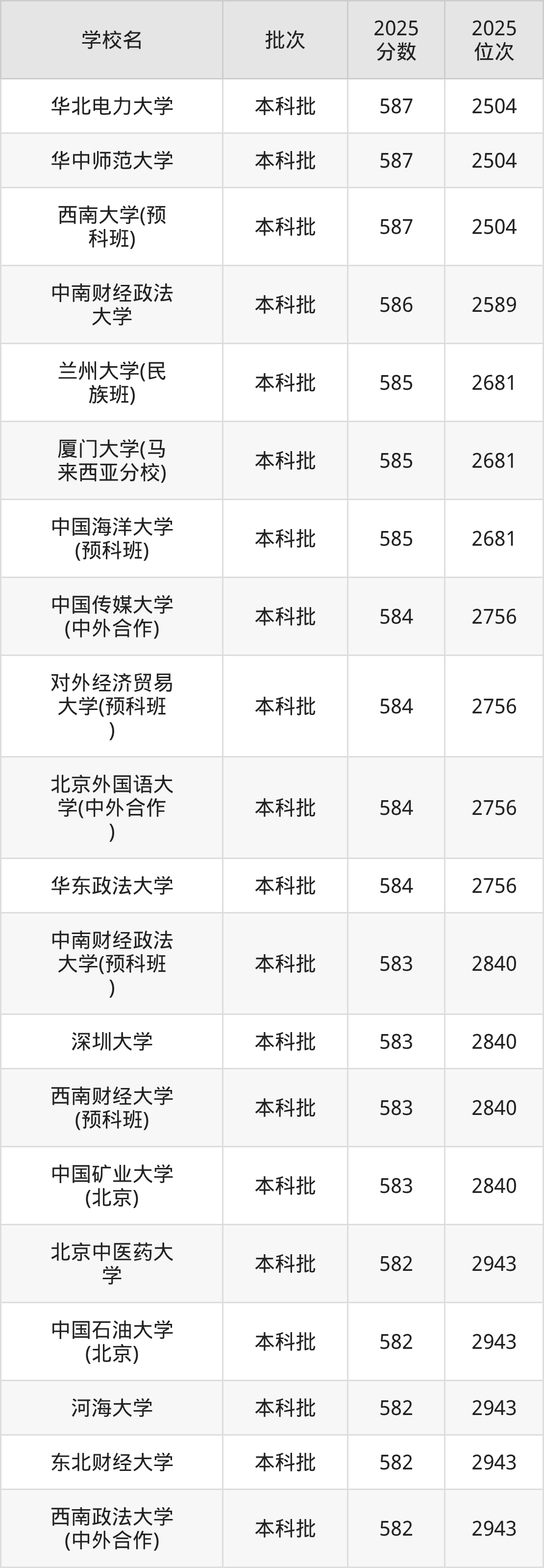 这些都是2026年高考历史类2944名~3042名考生可以报考的大学,更多学校名单如下表所示: