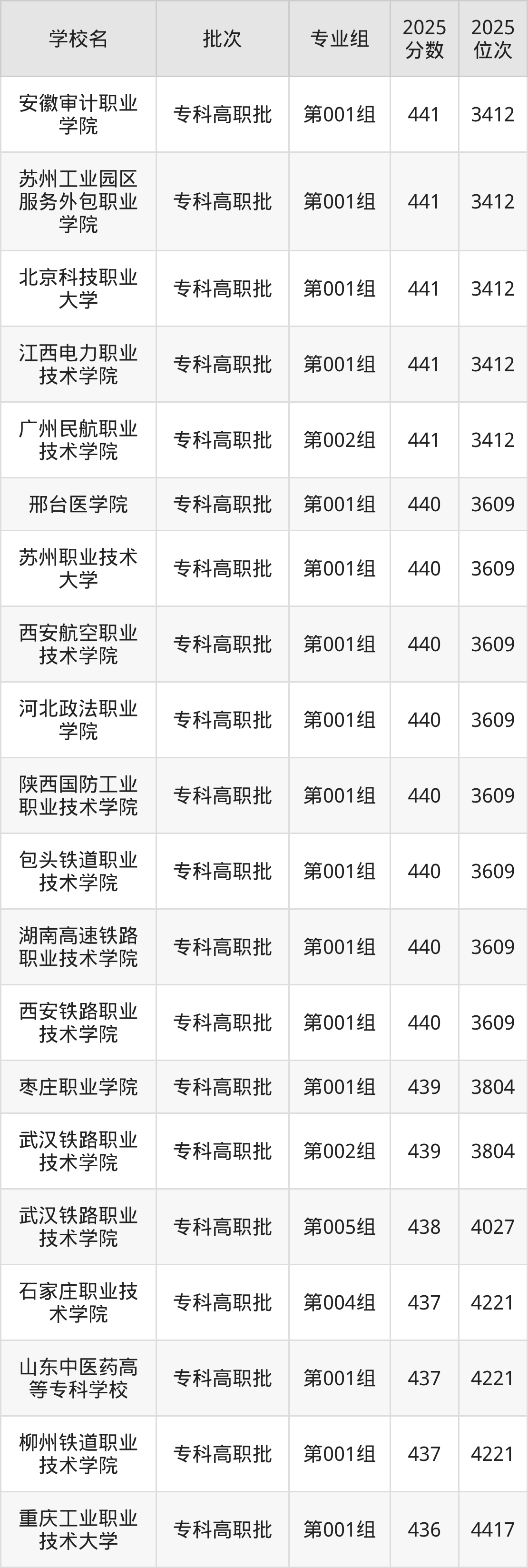 2025年山西高考历史类438分(3805名~4027名)能上的大学有武汉铁路职业技术学院第005组。
