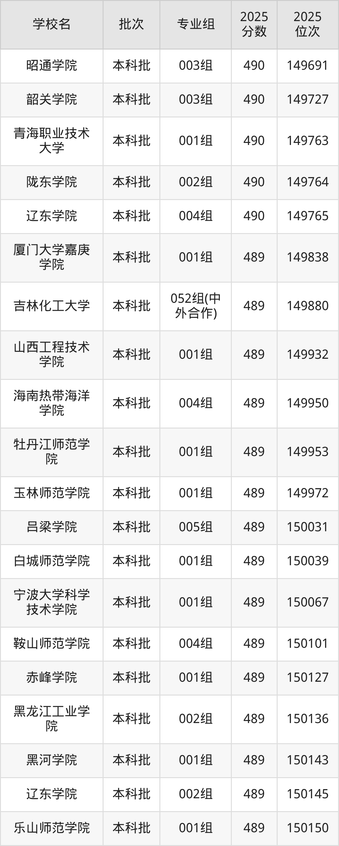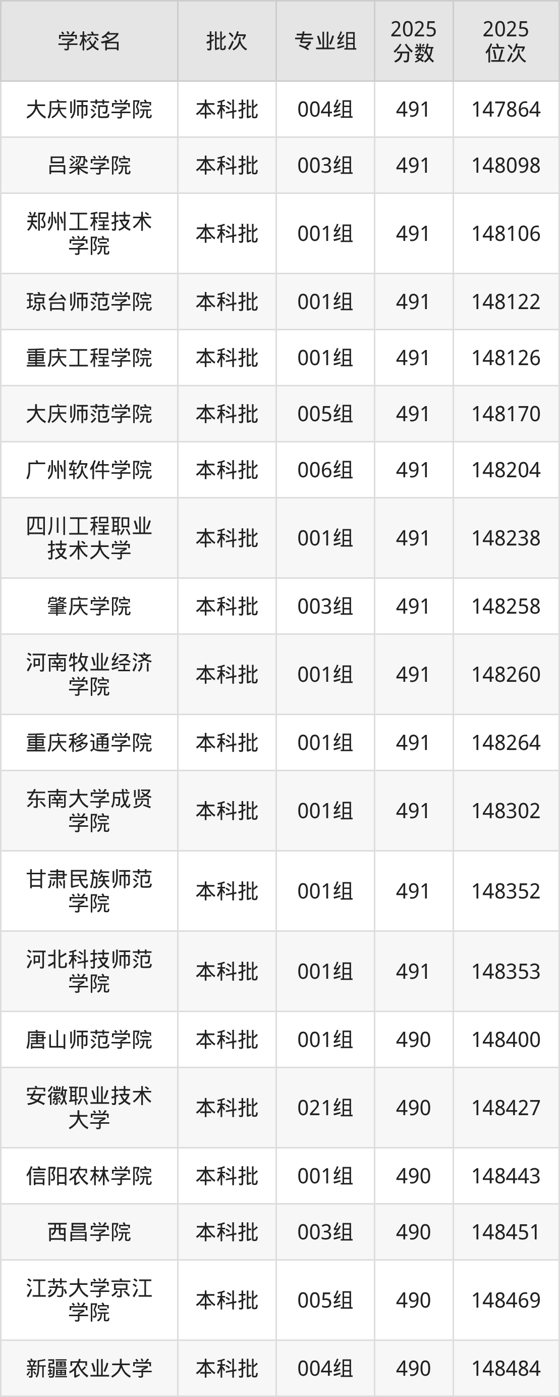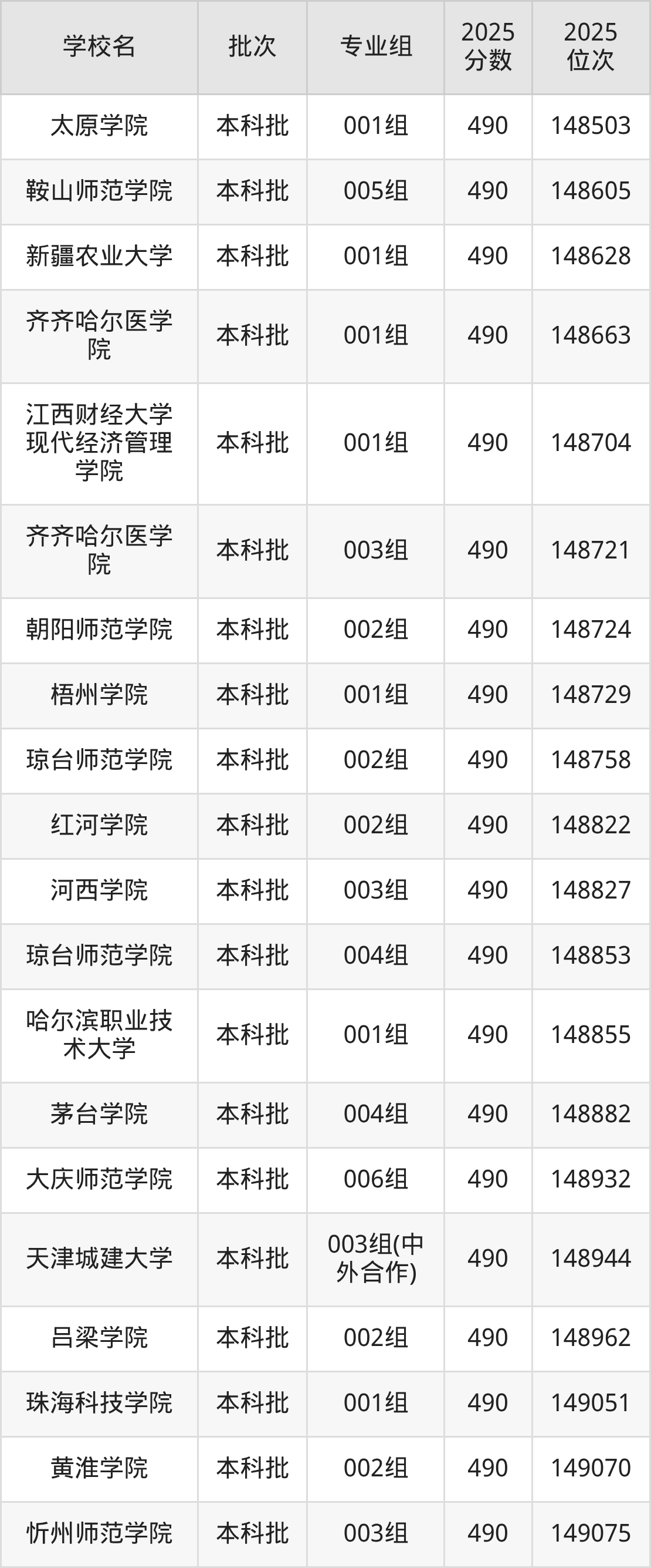 2025年安徽高考物理类490分(148356名~149816名)能上的大学有鞍山师范学院005组、朝阳师范学院002组、大庆师范学院006组、哈尔滨职业技术大学001组等。