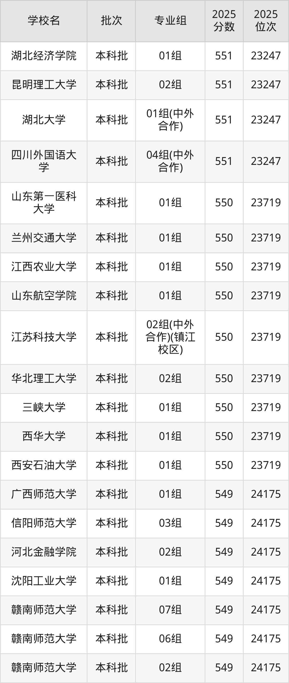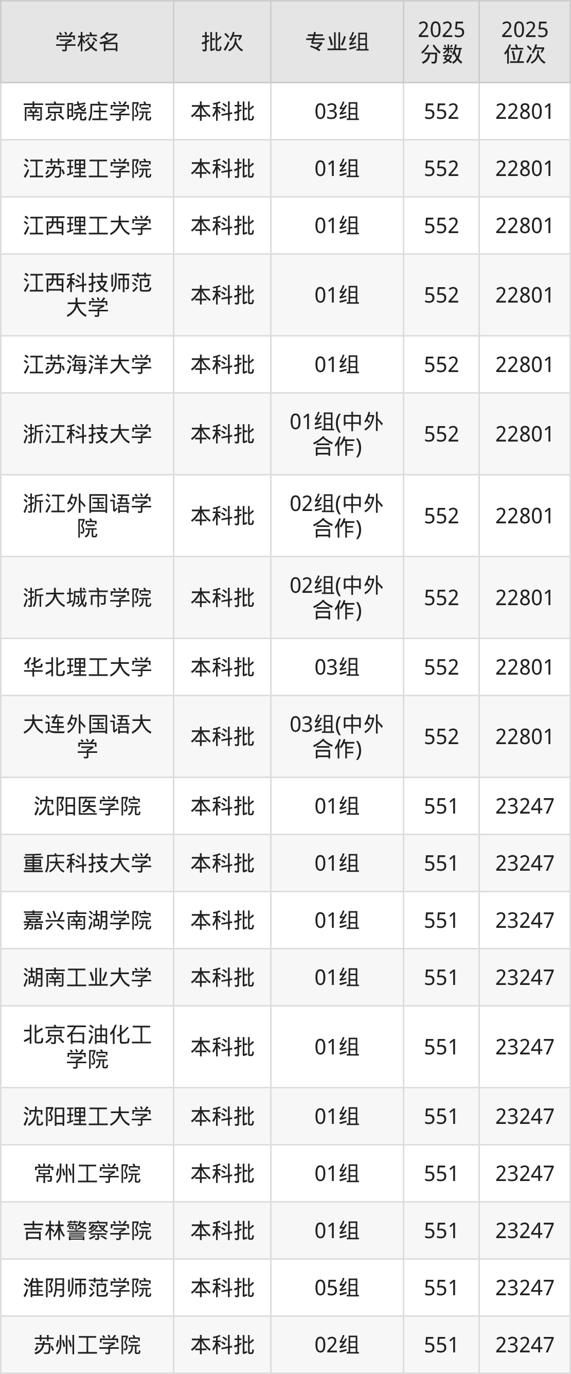 这些都是2026年高考物理类235名~240名考生可以报考的大学,更多学校名单如下表所示: