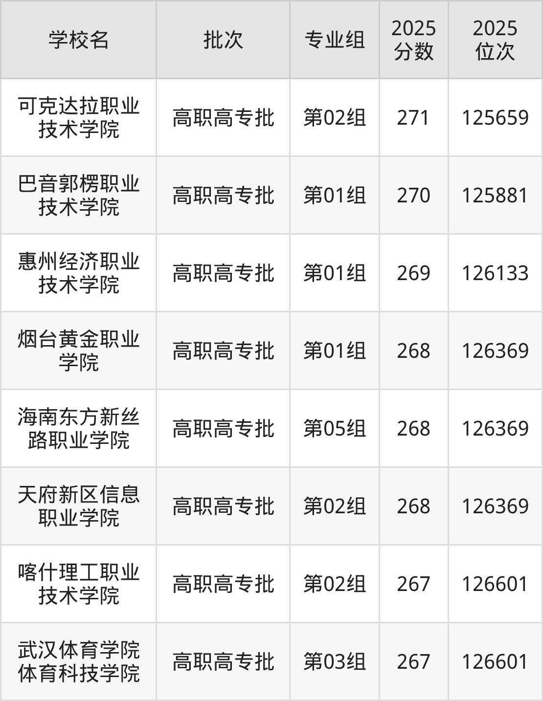 2025年湖北高考历史类269分(125882名~126133名)能上的大学有惠州经济职业技术学院第01组。