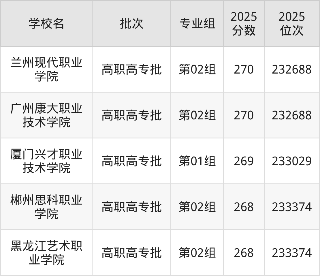 2025年湖北高考物理类269分(232689名~233029名)能上的大学有厦门兴才职业技术学院第01组。
