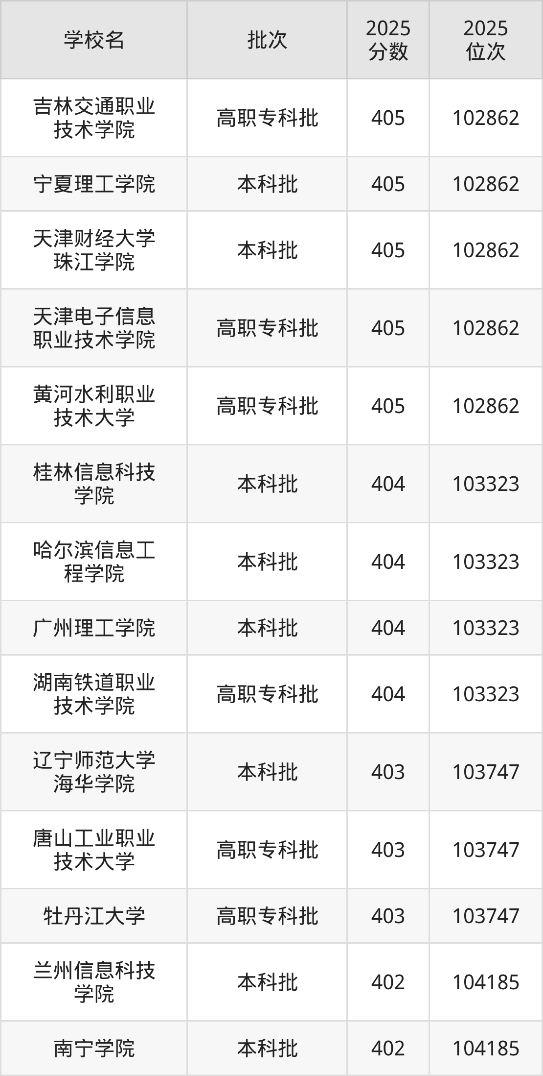 2025年辽宁高考物理类403分(103324名~103747名)能上的大学有牡丹江大学、辽宁师范大学海华学院、唐山工业职业技术大学。