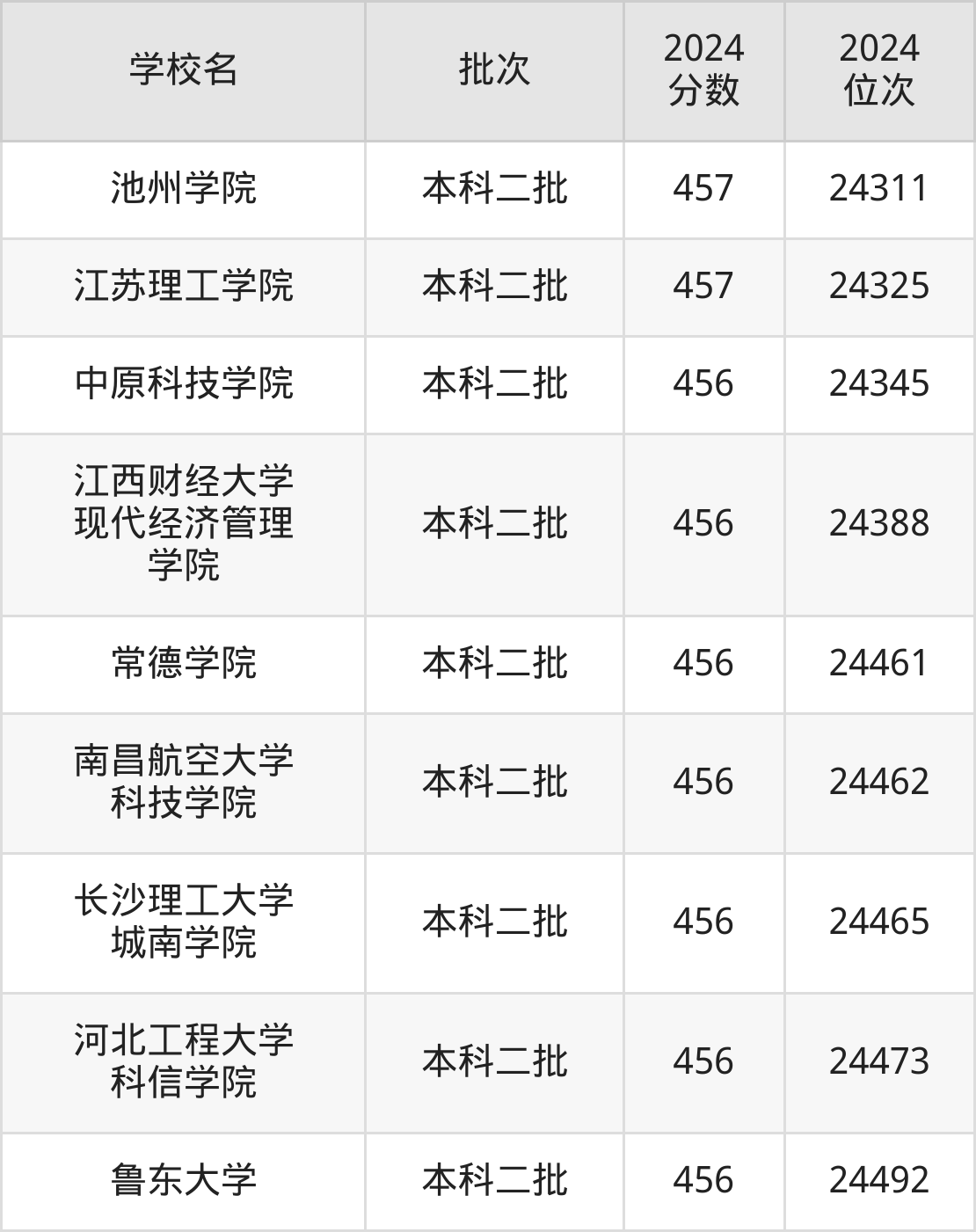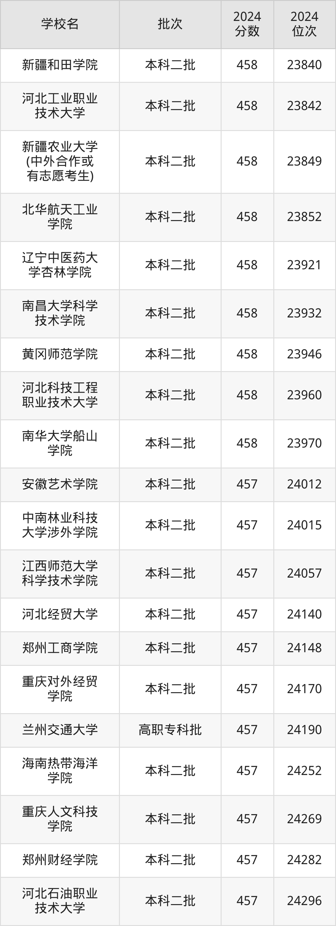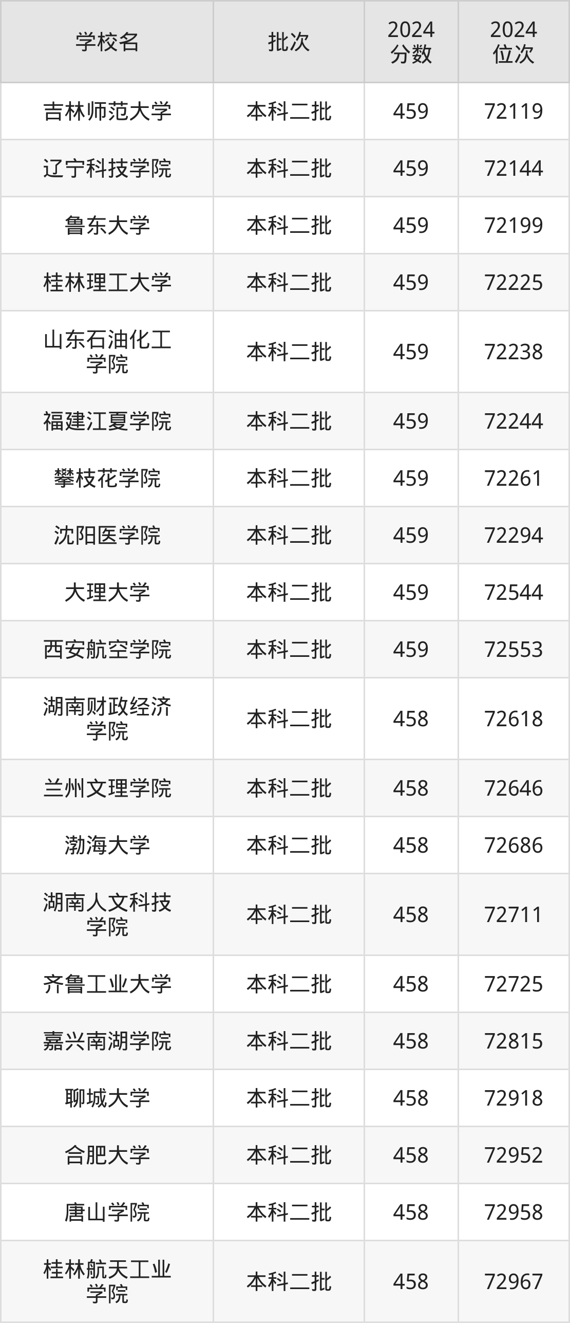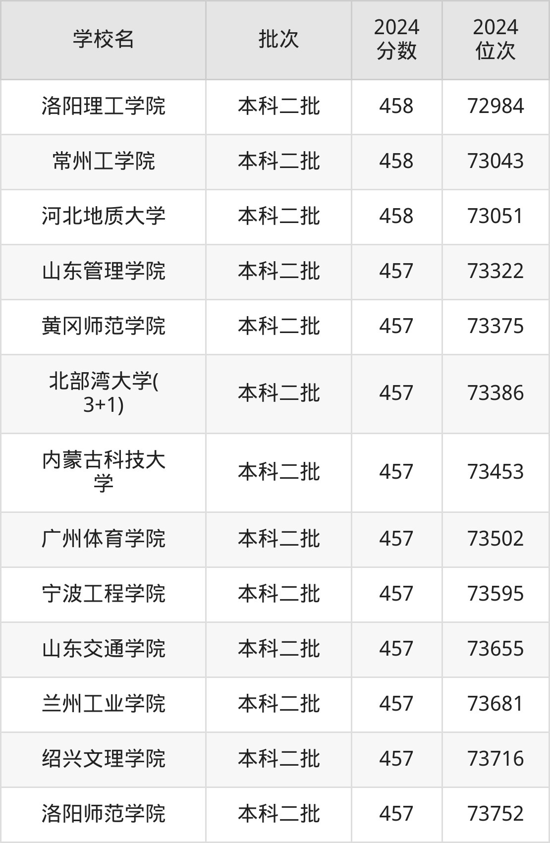 2024年陕西高考理科458分(72564名~73268名)能上的大学有河北地质大学、唐山学院、渤海大学、常州工学院等。