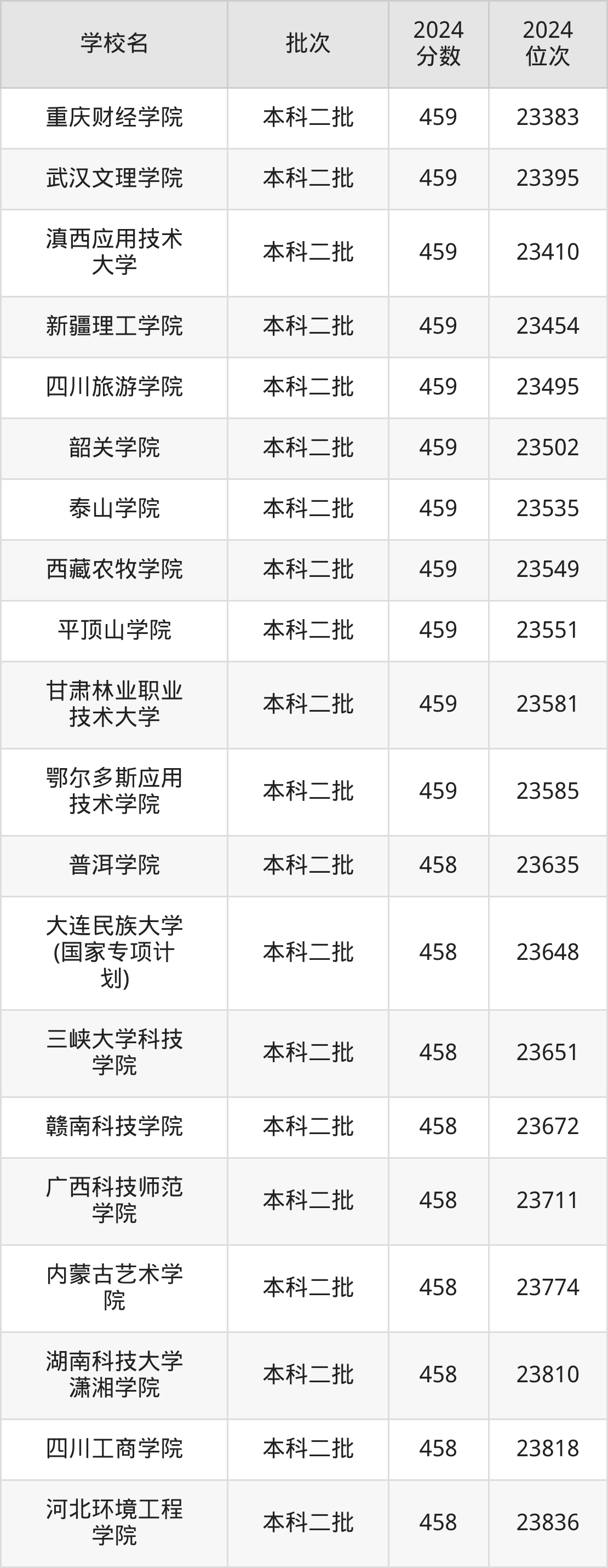 这些都是2025年高考文科23629名~23993名考生可以报考的大学,更多学校名单如下表所示: