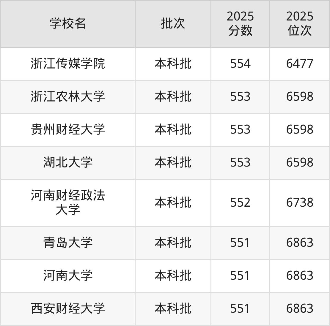 这些都是2026年高考历史类6236名~6368名考生可以报考的大学,更多学校名单如下表所示: