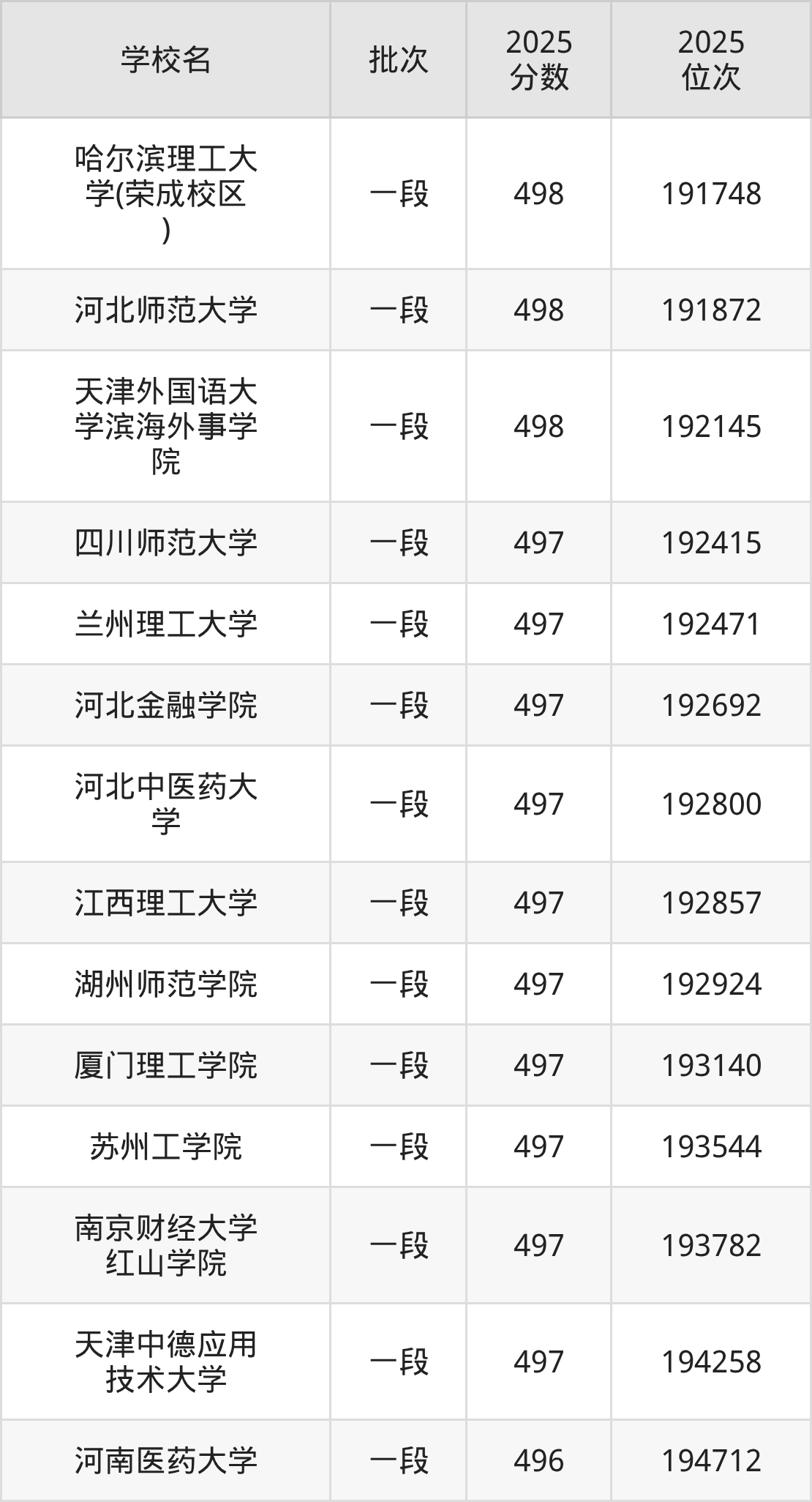 这些都是2026年高考192148名~194605名考生可以报考的大学,更多学校名单如下表所示: