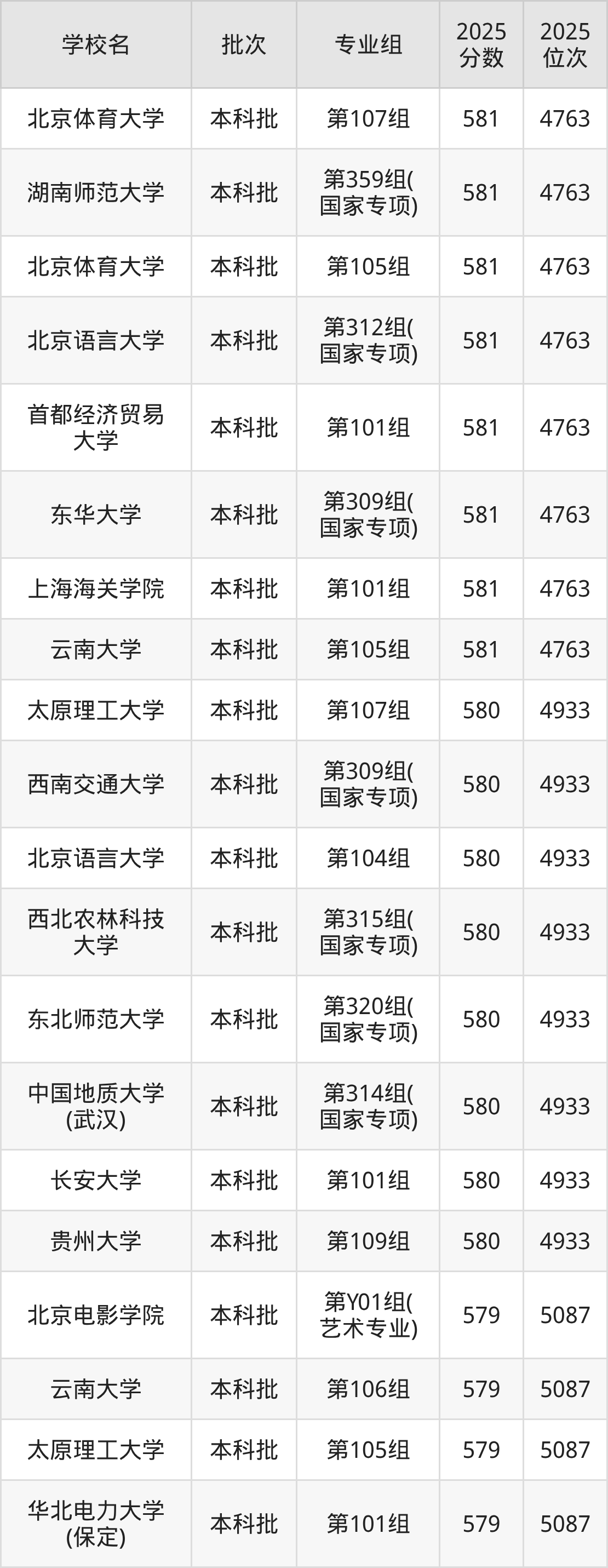 这些都是2026年高考历史类5263名~5433名考生可以报考的大学,更多学校名单如下表所示: