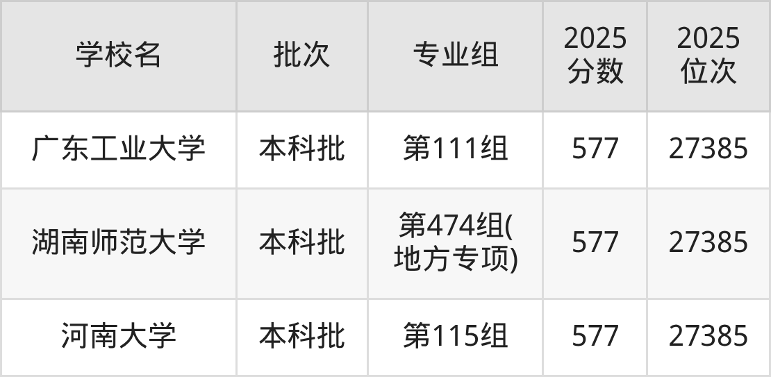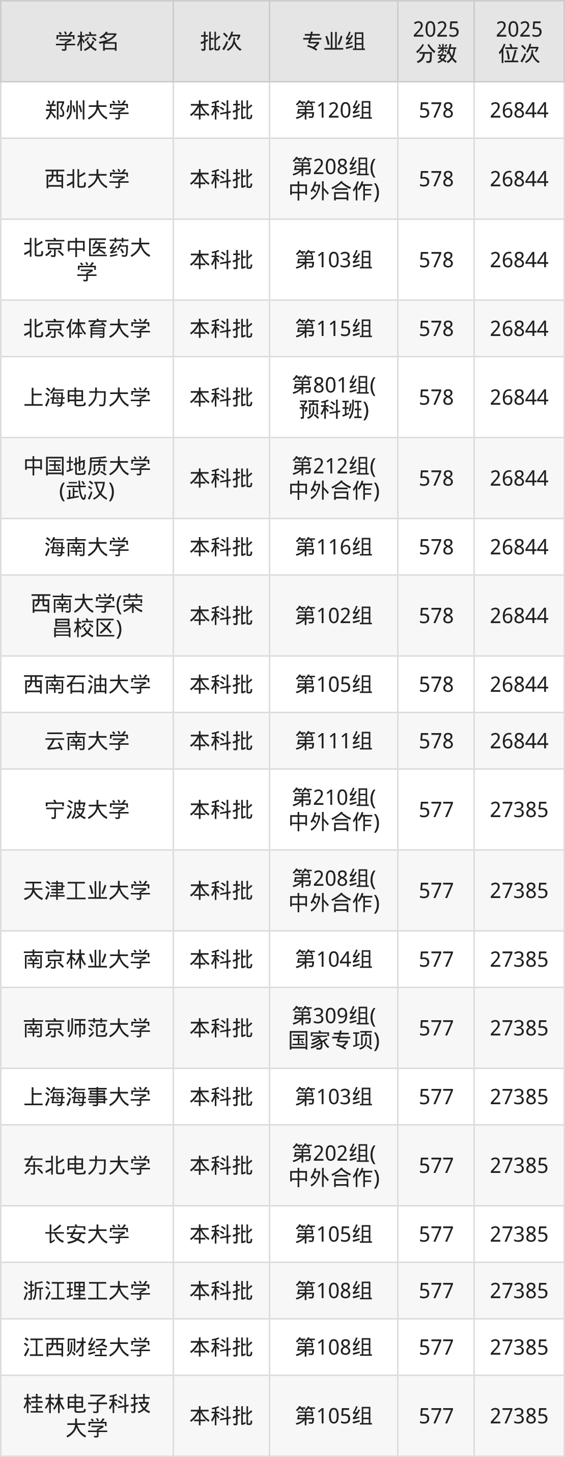 湖南高考577分:历史类排名5433位、物理类排名27385位。该分数位次对应能上的大学历史类有中央民族大学第311组(国家专项)、浙江师范大学第108组;物理类有天津工业大学第208组(中外合作)、东北电力大学第202组(中外合作),更多名单如下文所示,2026届考生可参考。