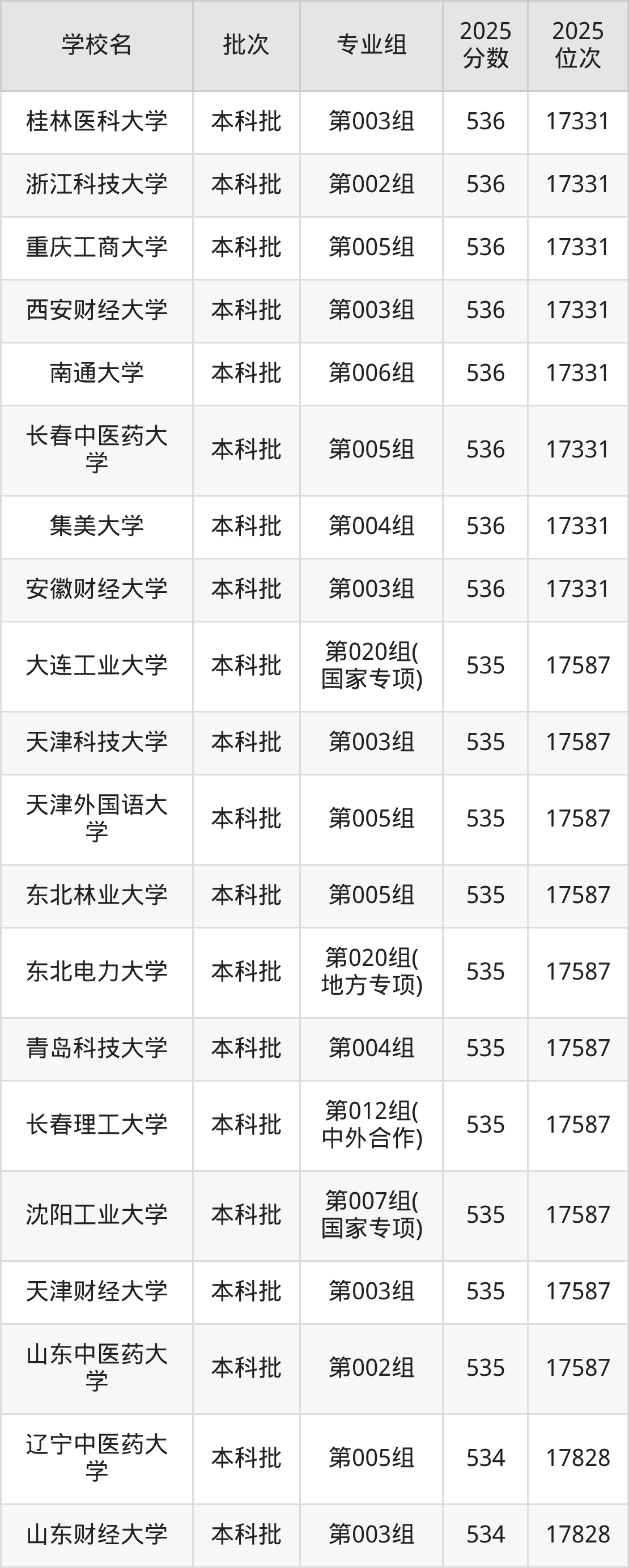 2025年吉林高考物理类535分(17332名~17587名)能上的大学有天津科技大学第003组、天津外国语大学第005组、天津财经大学第003组、沈阳工业大学第007组(国家专项)等。