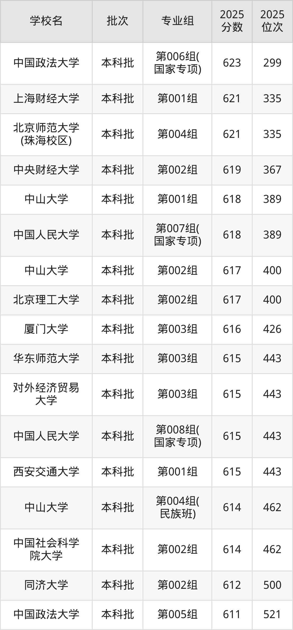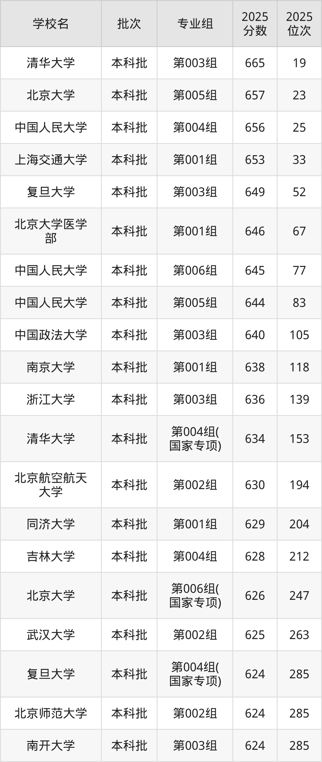 这些都是2026年高考历史类24名~25名考生可以报考的大学,更多学校名单如下表所示:
