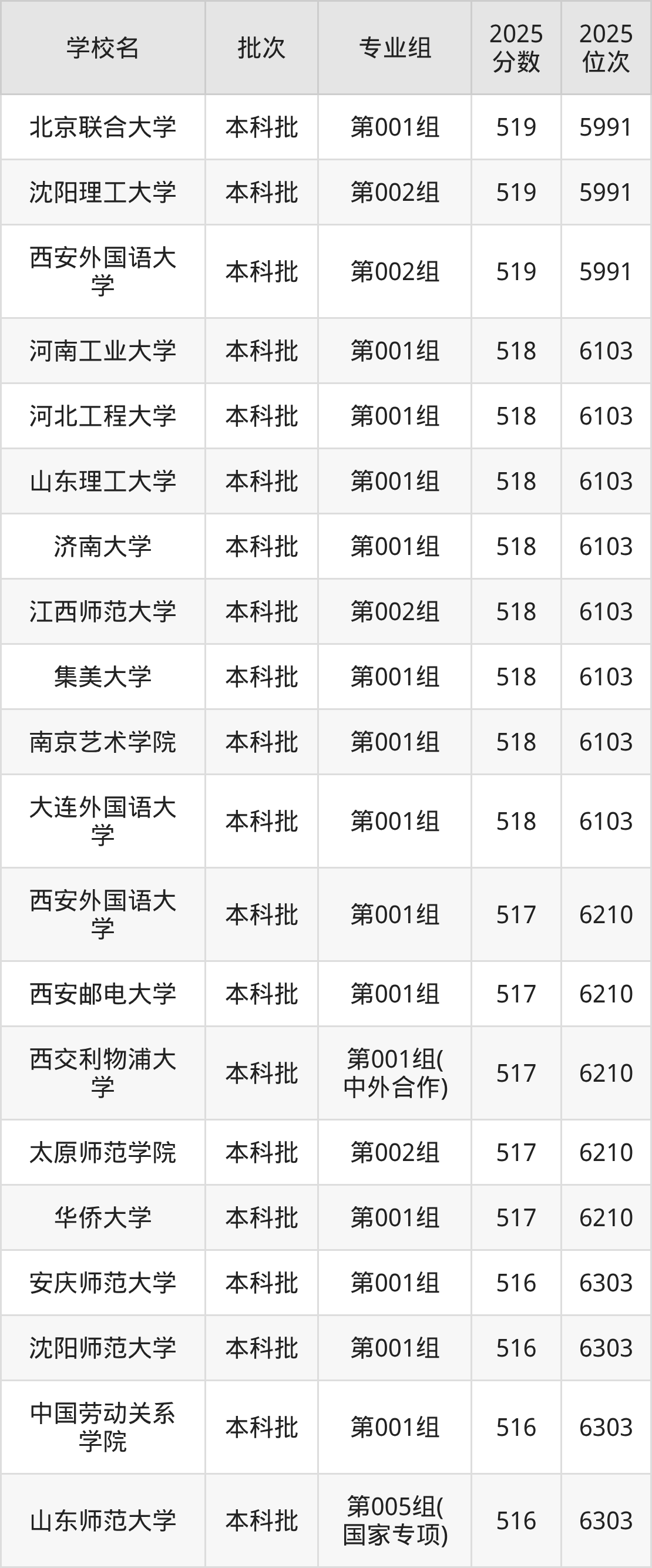 这些都是2026年高考历史类6401名~6497名考生可以报考的大学,更多学校名单如下表所示: