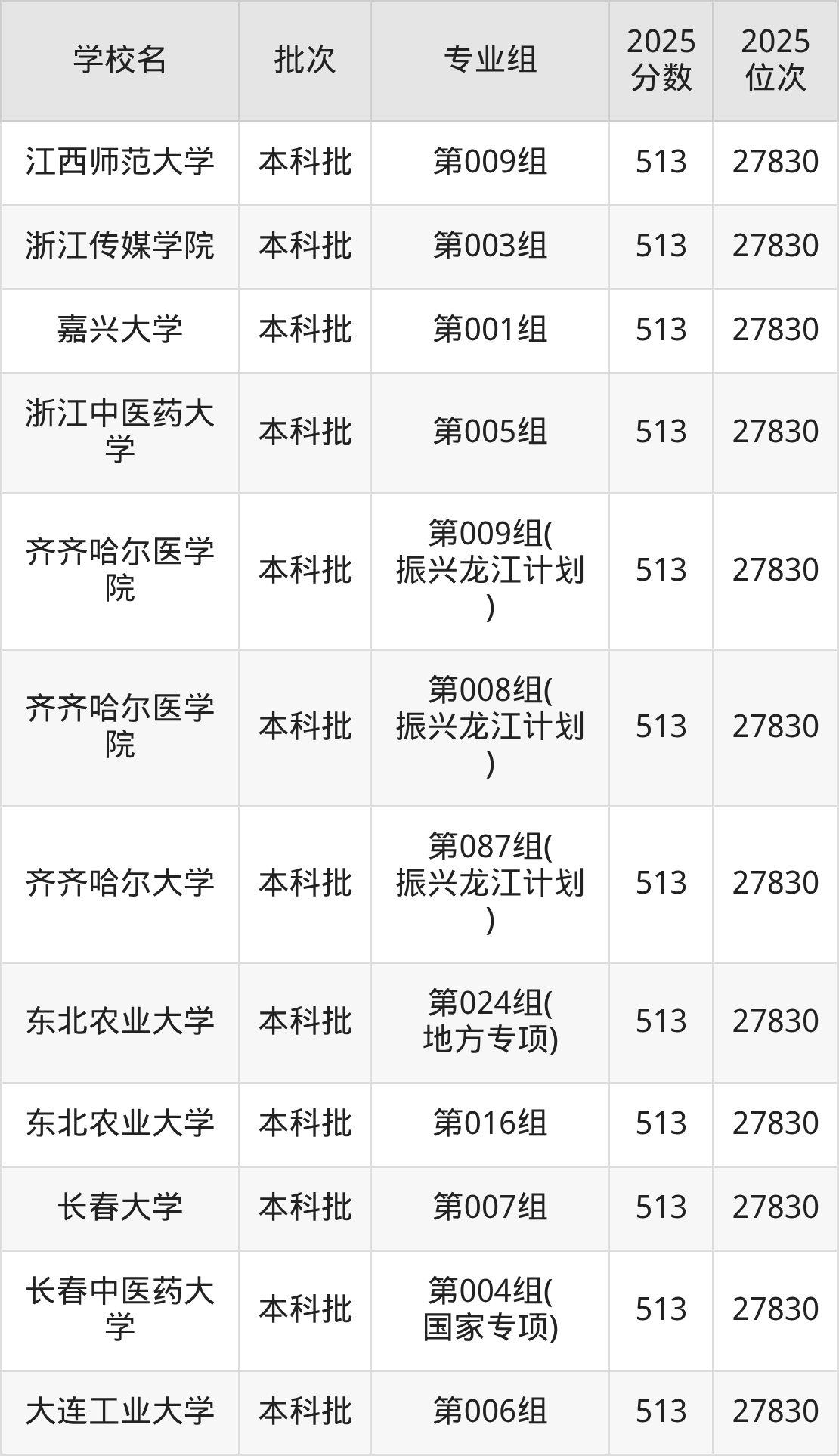另外录取位次低于该区间(较稳妥)的有齐齐哈尔医学院第008组(振兴龙江计划)(27830名)、东北农业大学第024组(地方专项)(27830名)等;录取位次高于该区间(可冲)的有天津师范大学第006组(27172名)、厦门理工学院第005组(27172名)等。