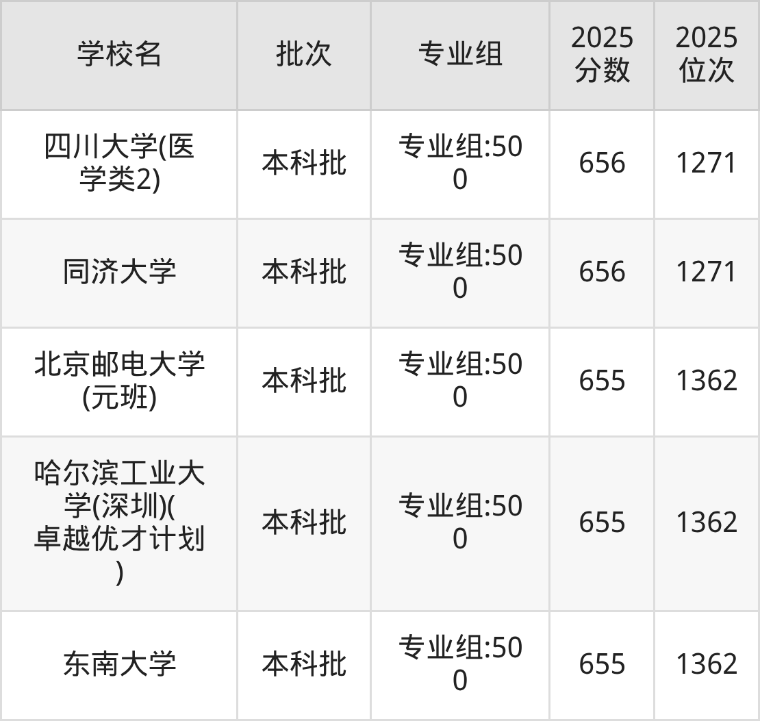 这些都是2026年高考物理类892名~942名考生可以报考的大学,更多学校名单如下表所示: