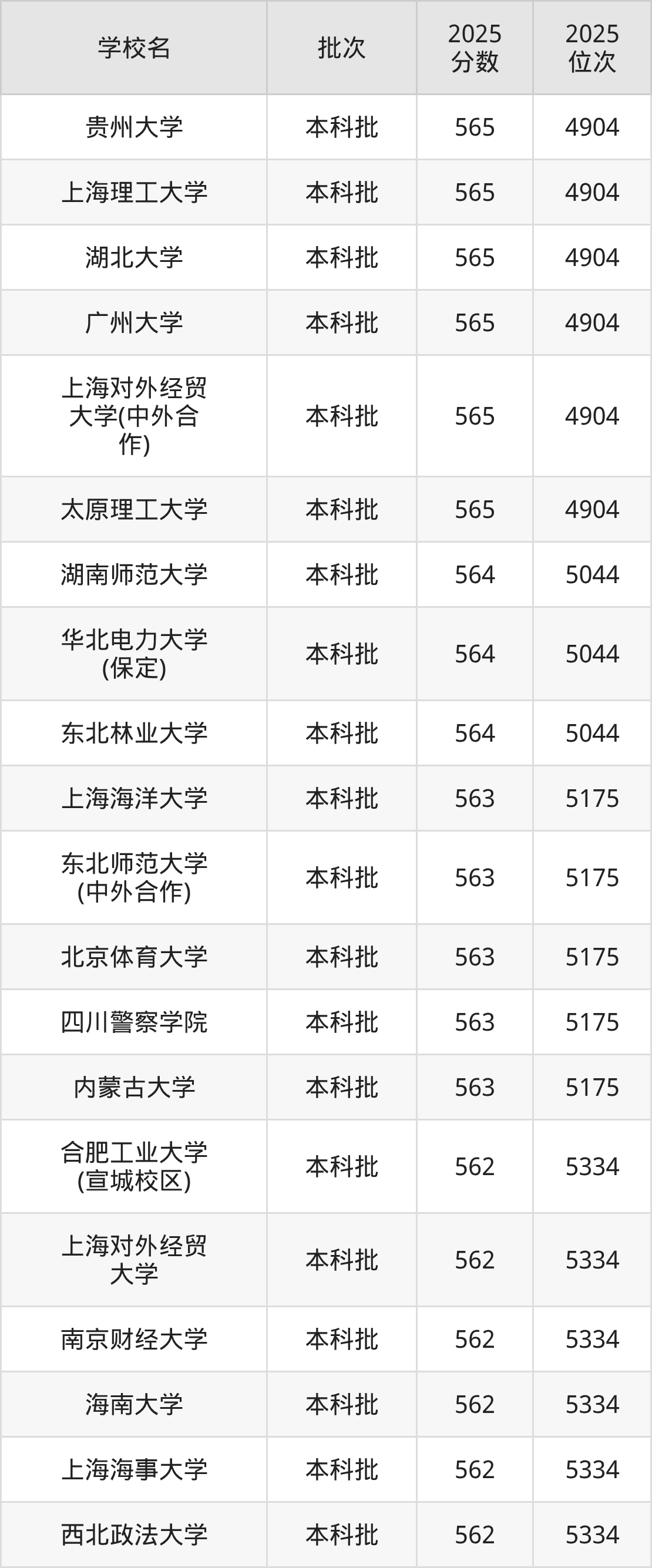 这些都是2026年高考历史类5335名~5482名考生可以报考的大学,更多学校名单如下表所示: