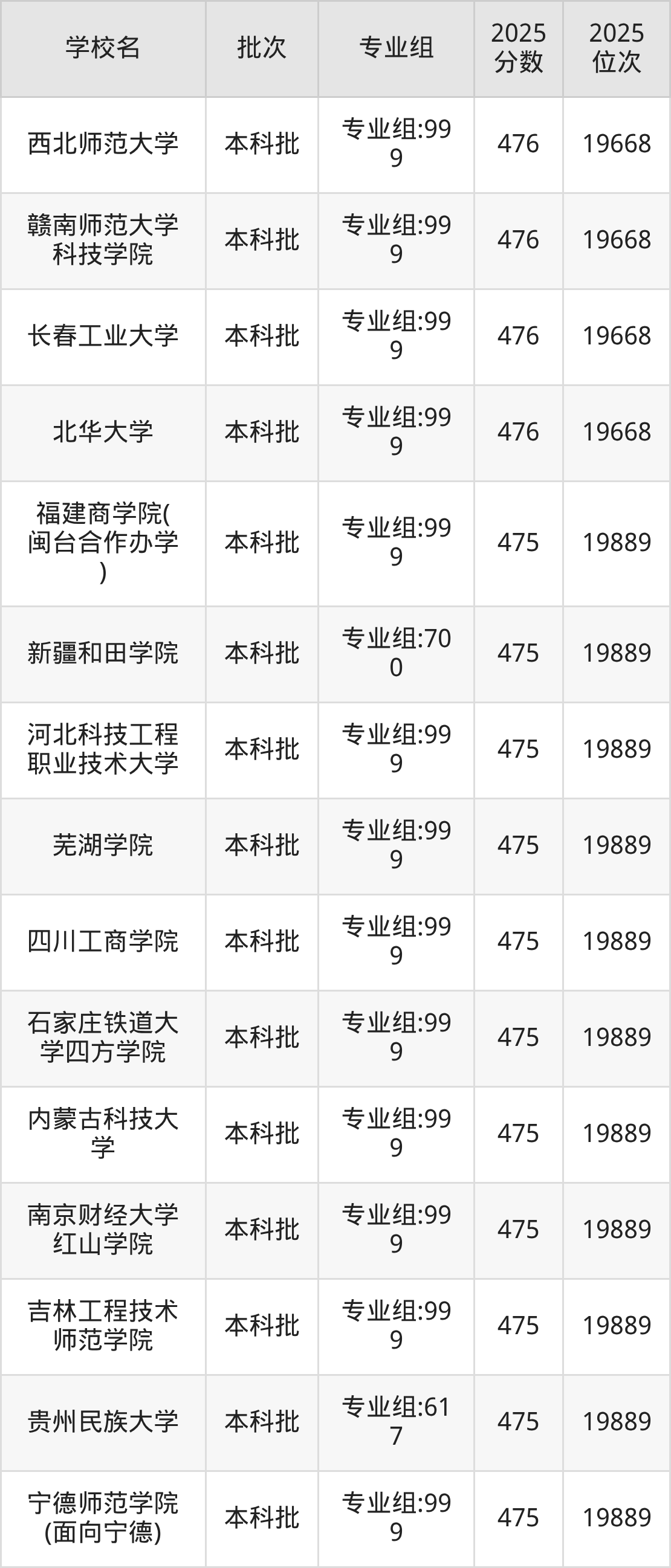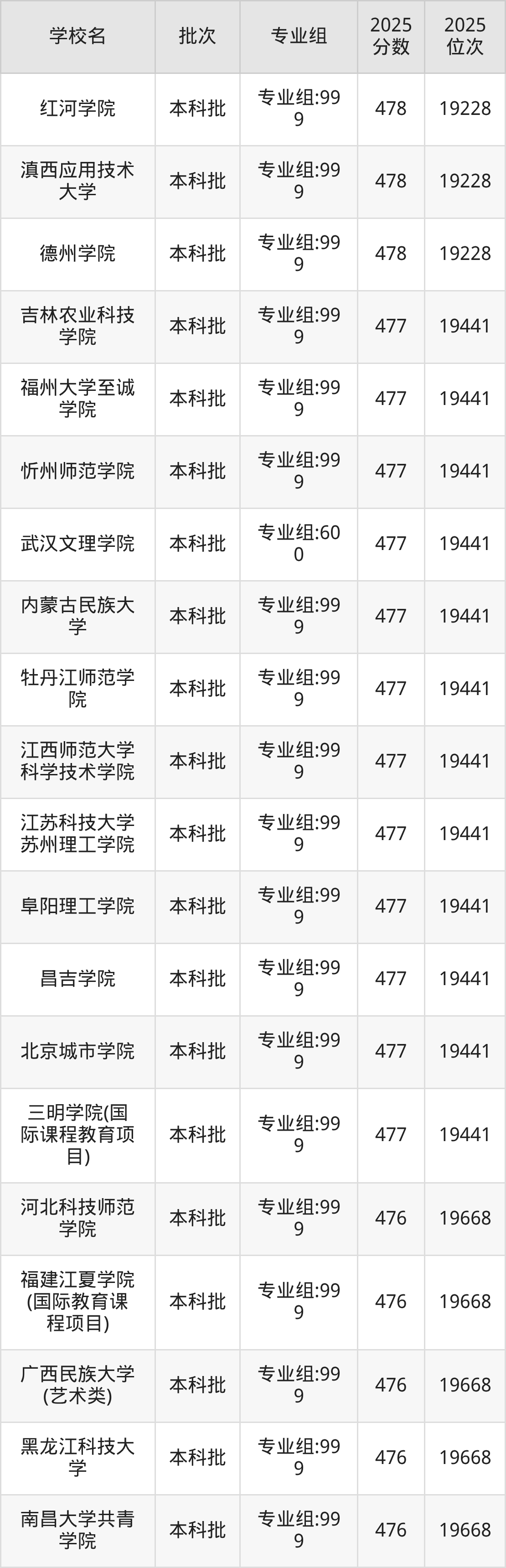 这些都是2026年高考历史类19229名~19441名考生可以报考的大学,更多学校名单如下表所示:
