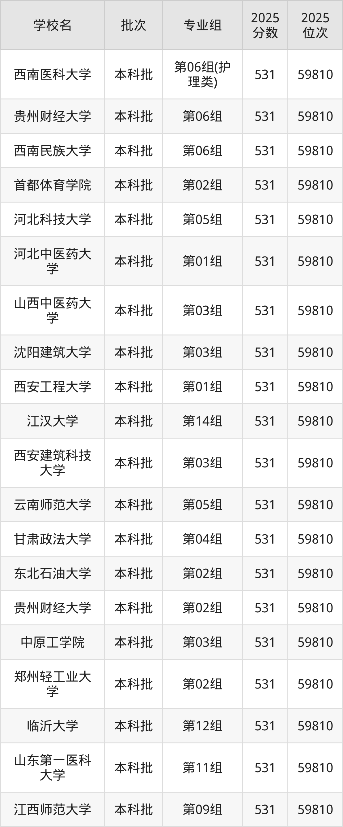 这些都是2026年高考物理类59811名~60629名考生可以报考的大学,更多学校名单如下表所示: