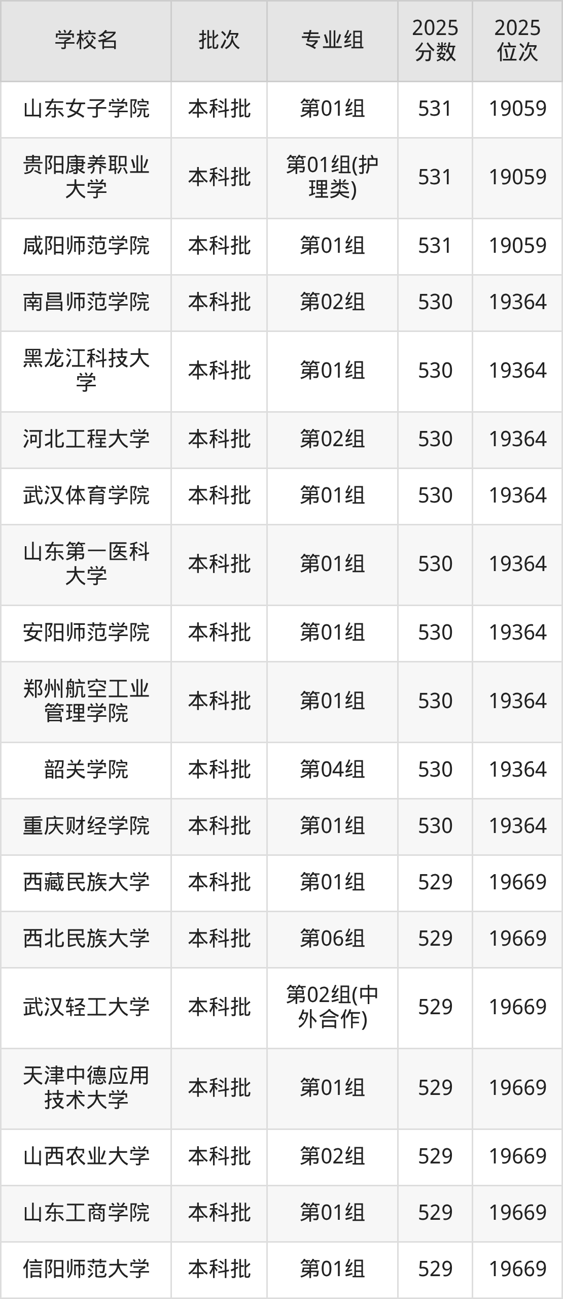 2025年湖北高考历史类530分(19060名~19364名)能上的大学有武汉体育学院第01组、河北工程大学第02组、黑龙江科技大学第01组、南昌师范学院第02组等。