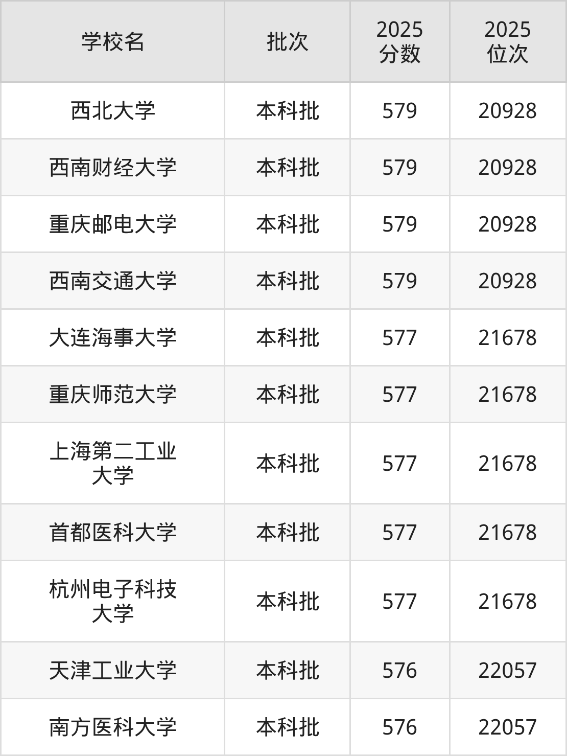 2025年辽宁高考历史类577分(3803名~3914名)能上的大学有河北工业大学、中央民族大学、太原理工大学、华南师范大学。